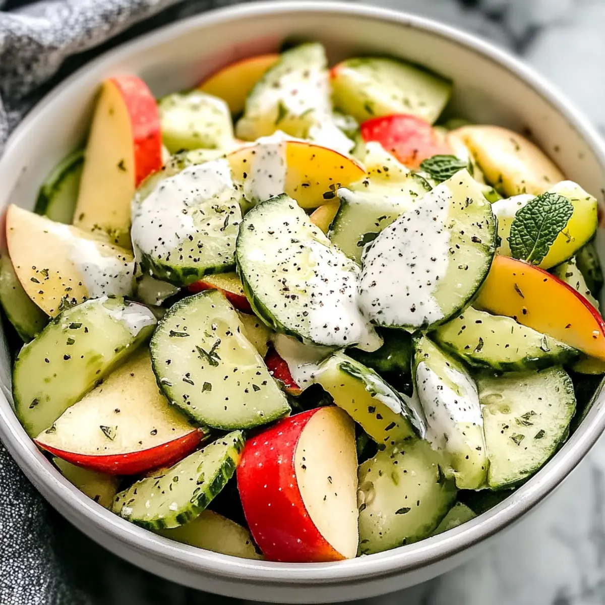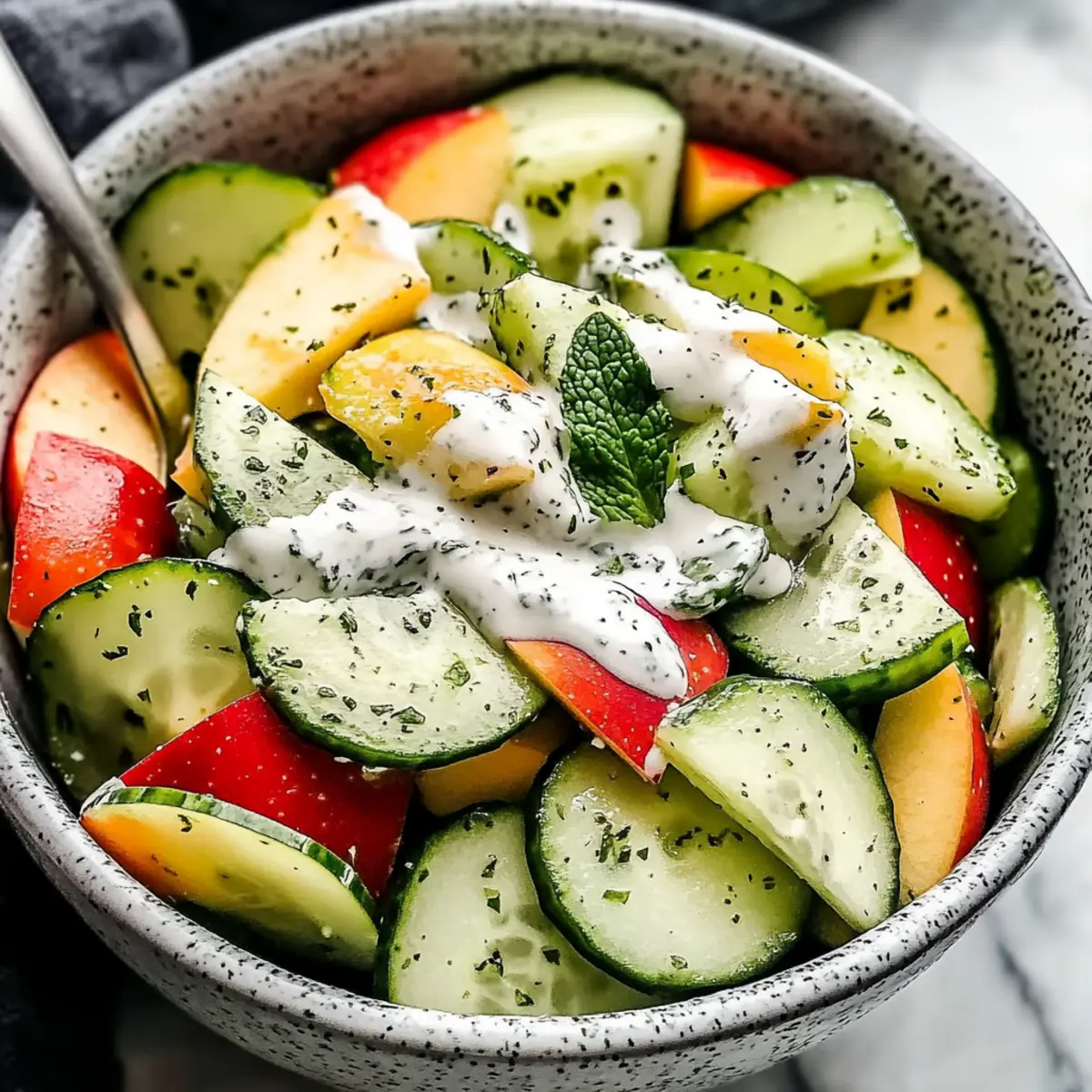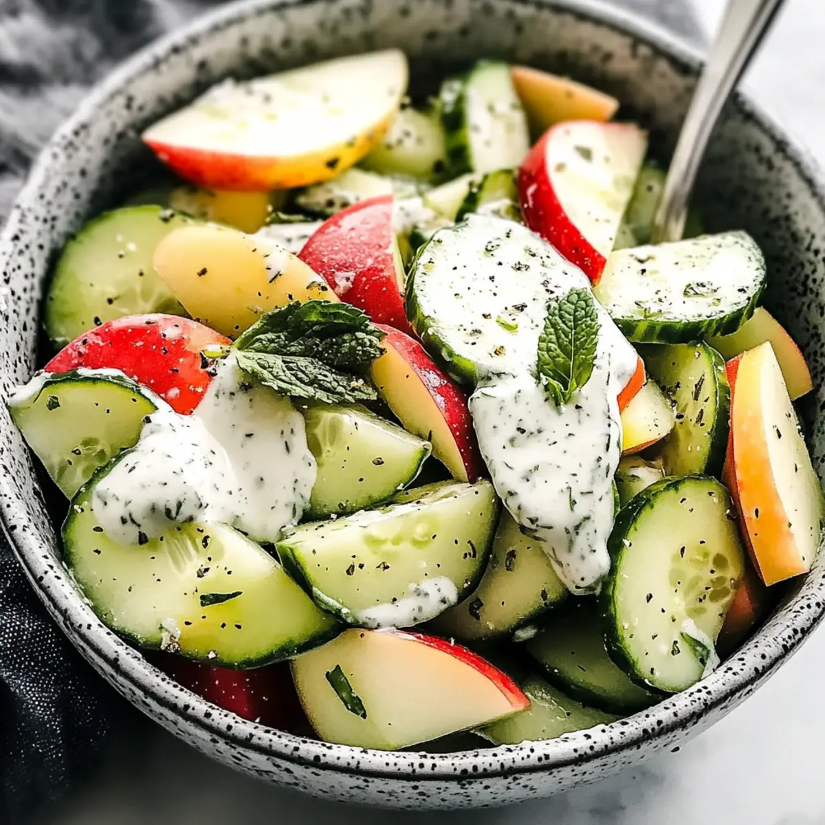 Every summer, I find myself searching for dishes that celebrate freshness and simplicity, and this Apple Cucumber Salad with Creamy Mint Yogurt Dressing is my ultimate go-to. Imagine biting into crunchy apples and cool cucumbers, all enveloped in a creamy dressing that dances with hints of fresh mint—it’s like a garden party on your plate! Not only is this salad a breeze to whip up—perfect for those hot days when cooking feels like a chore—but it’s also entirely customizable, allowing you to cater to any dietary preference. Plus, it’s refreshingly light yet satisfying enough to stand alone or complement your favorite grilled dishes. Curious about how this delightful creation comes together? Let’s dive into this vibrant recipe!