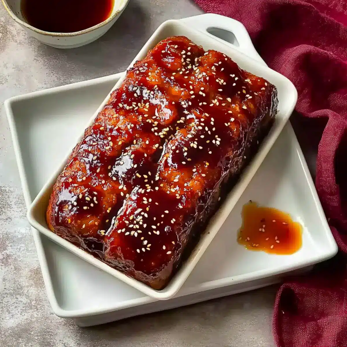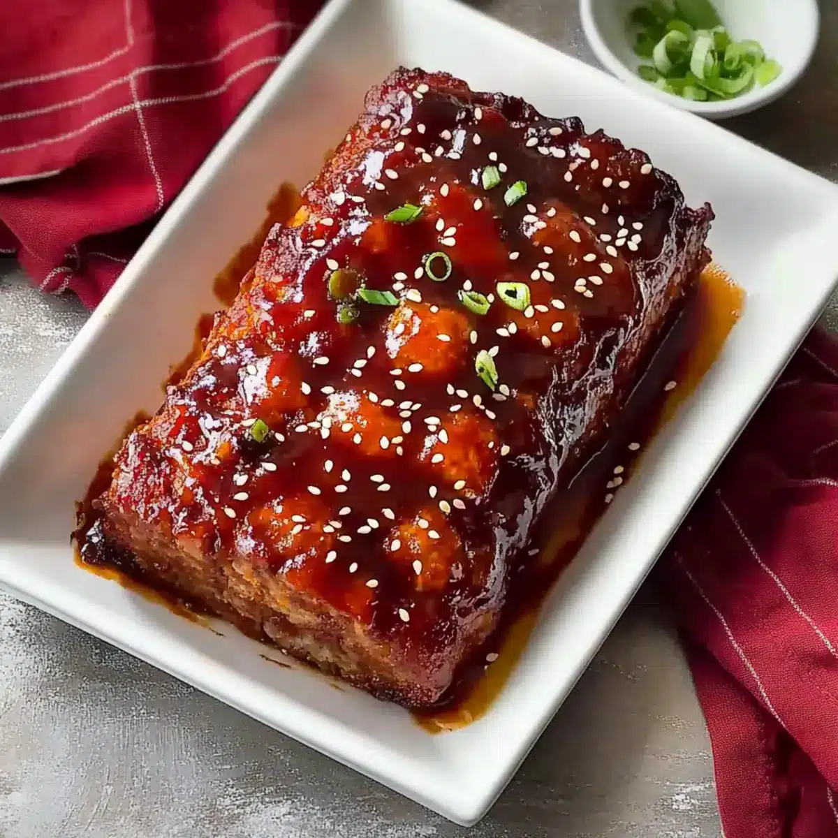 Once baked, let your delicious meatloaf rest for about 5 minutes before slicing. This resting time allows the juices to redistribute, ensuring each slice is juicy and flavorful. Garnish with sesame seeds for a lovely touch, and serve your Asian-Inspired Korean Meatloaf warm alongside your favorite sides.