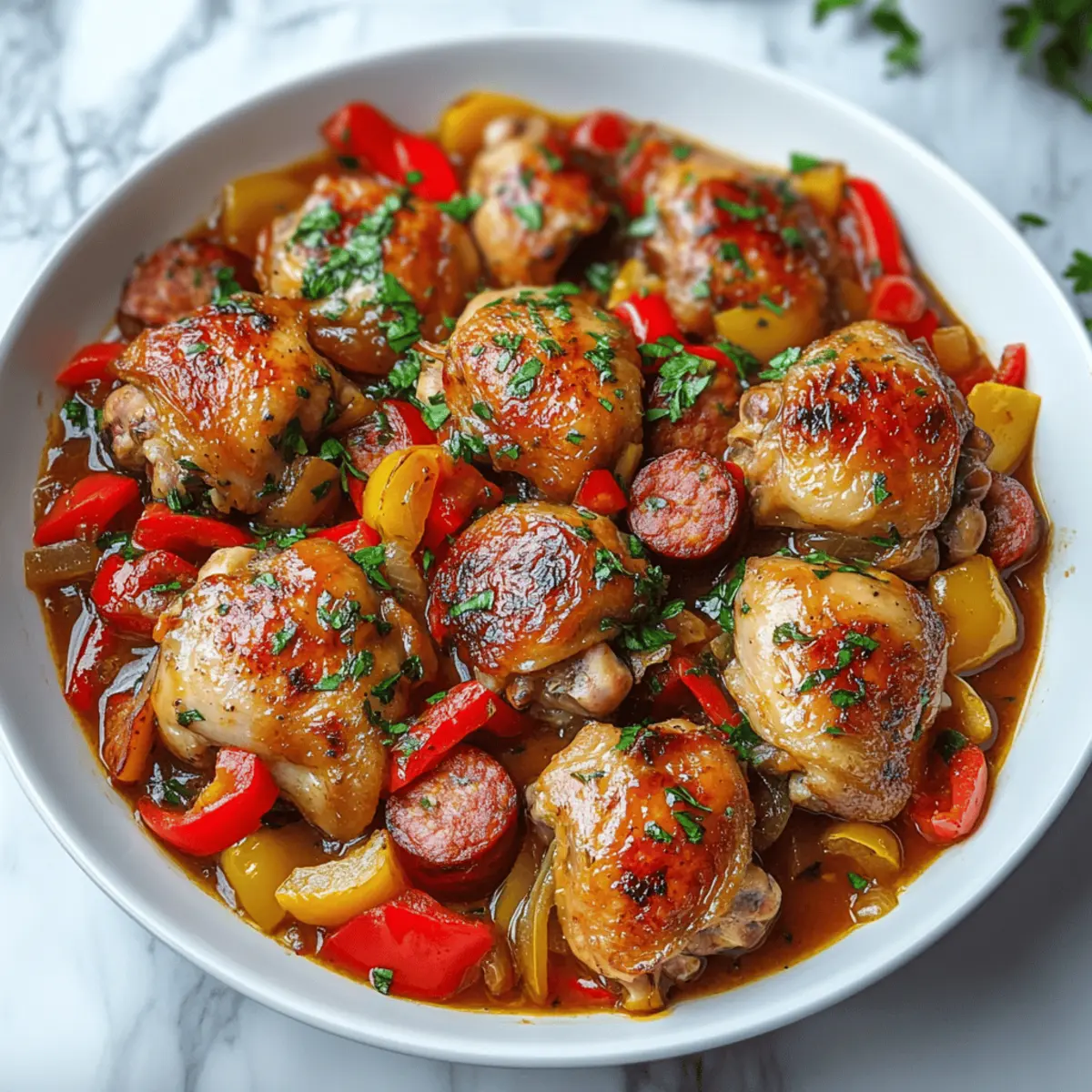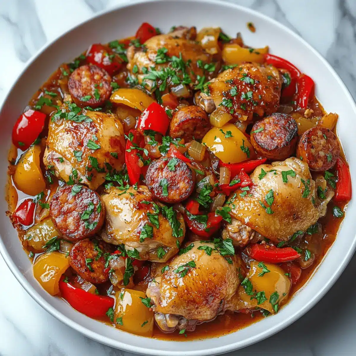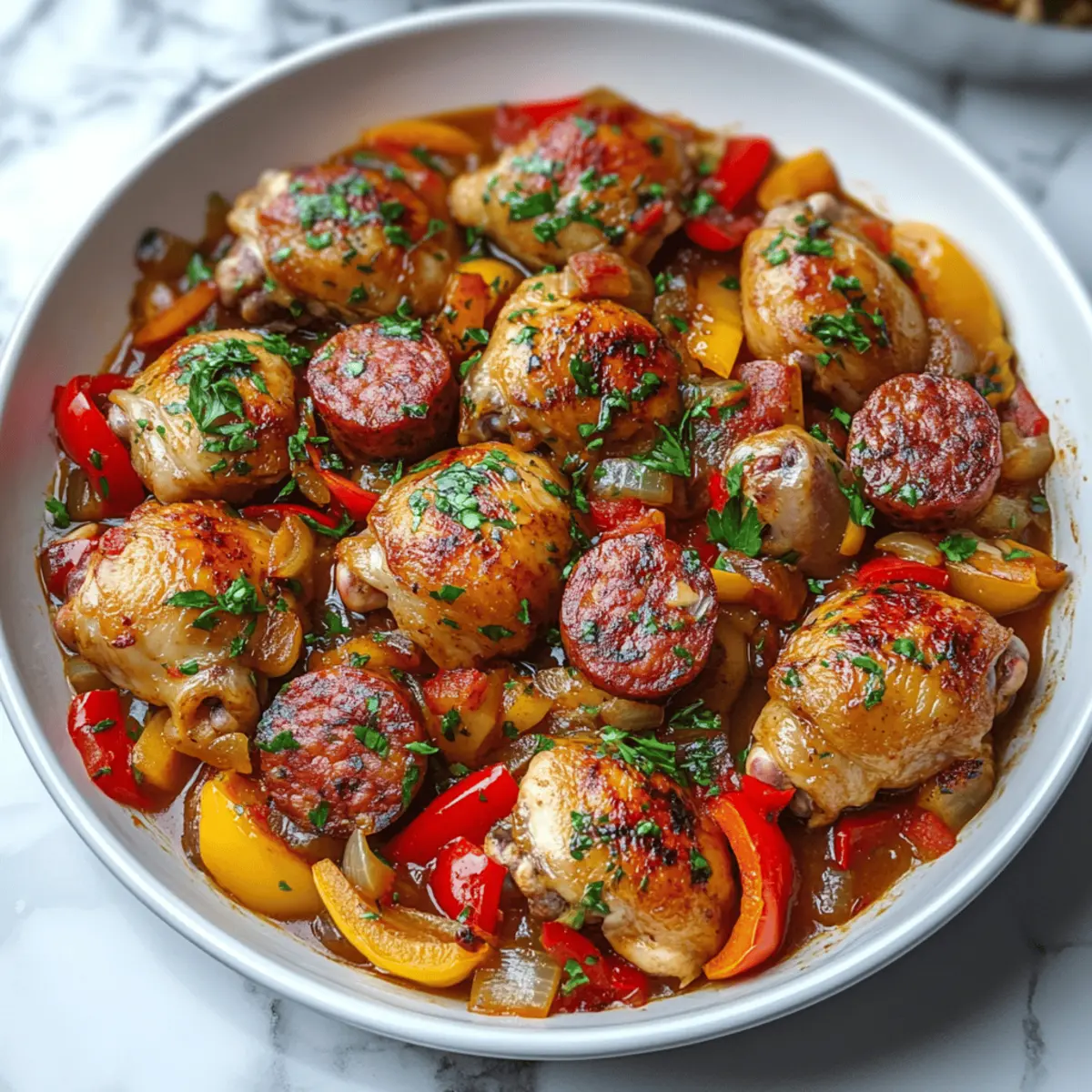 Irresistible Flavor: This dish combines juicy chicken and spicy sausage with a vibrant sauce that’s both colorful and aromatic, making every bite a celebration of Italian-American cuisine.