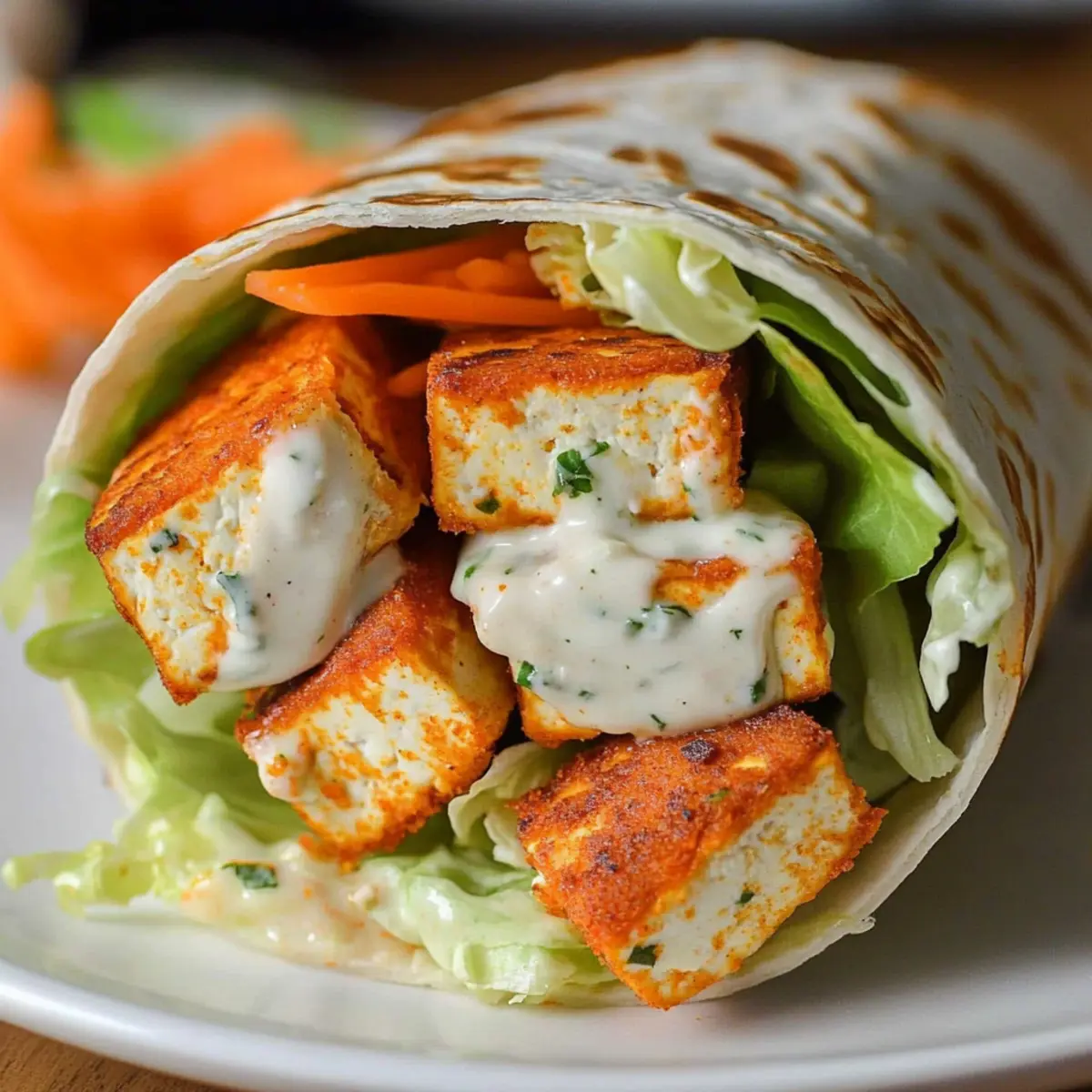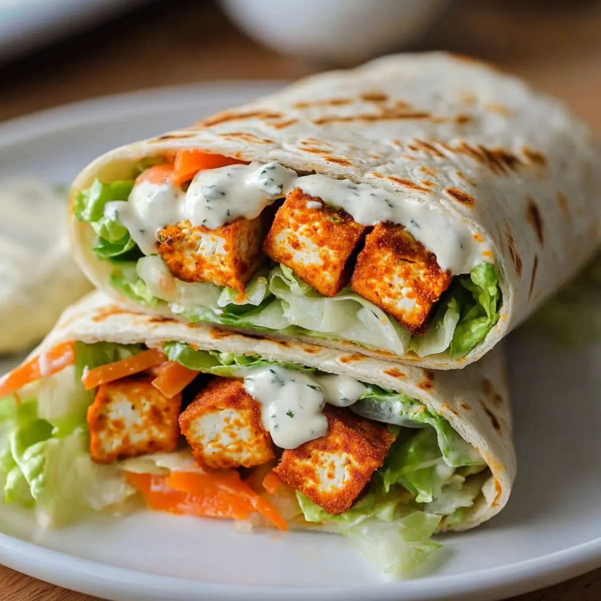 Crispy Buffalo Tofu Wrap with Easy Vegan Ranch Delight