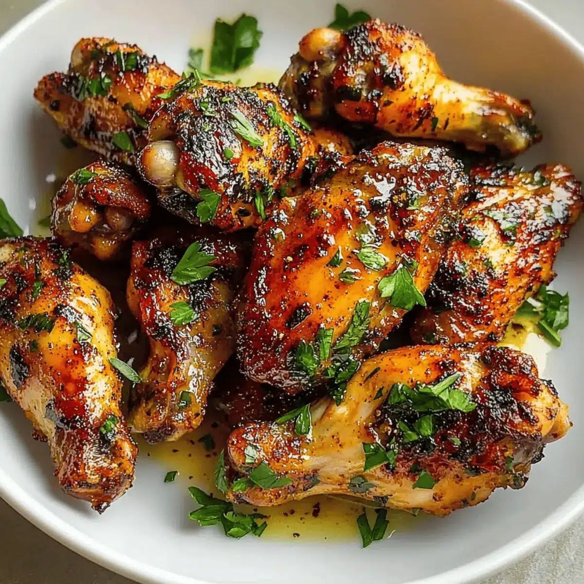 Once the wings are out of the oven, transfer them to a large bowl and immediately toss them with the warm garlic butter until well coated. This final touch will elevate the wings, giving them an irresistible shine. If desired, sprinkle chopped fresh parsley on top for a beautiful pop of color and added freshness.