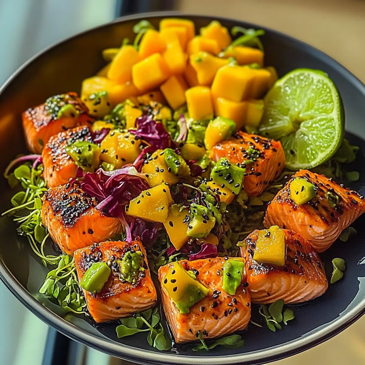 Delicious Salmon Bites with Mango-Avocado Salsa Bowl