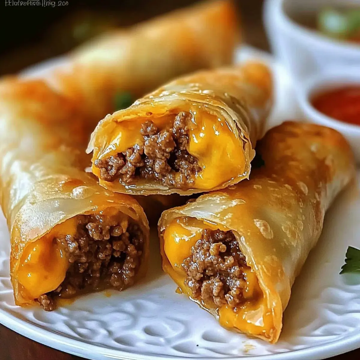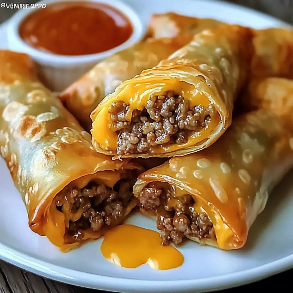Creative Fillings: Feel free to experiment with fillings! Adding diced pickles or mustard gives an authentic cheeseburger flavor that takes these eggrolls to the next level.