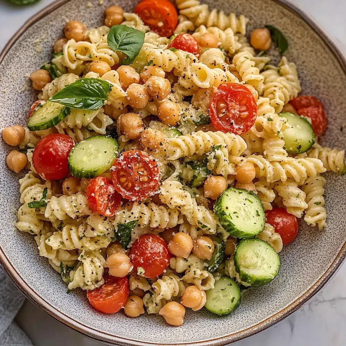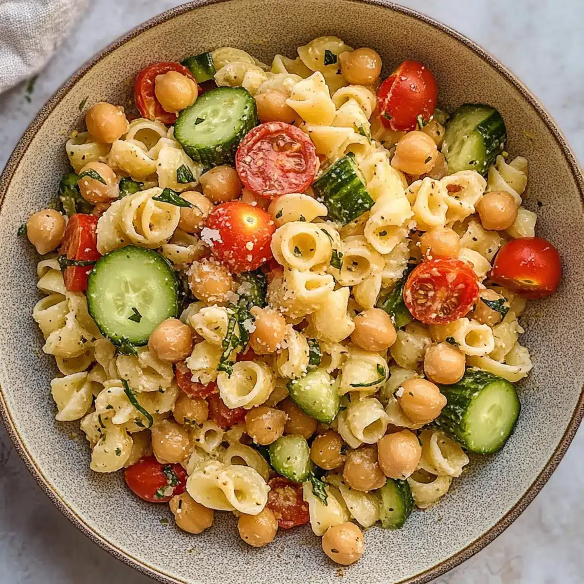 Fresh Ingredients: Always opt for fresh vegetables and herbs when making your Chickpea Pasta Salad. This enhances flavor and crunch, making every bite delightful.