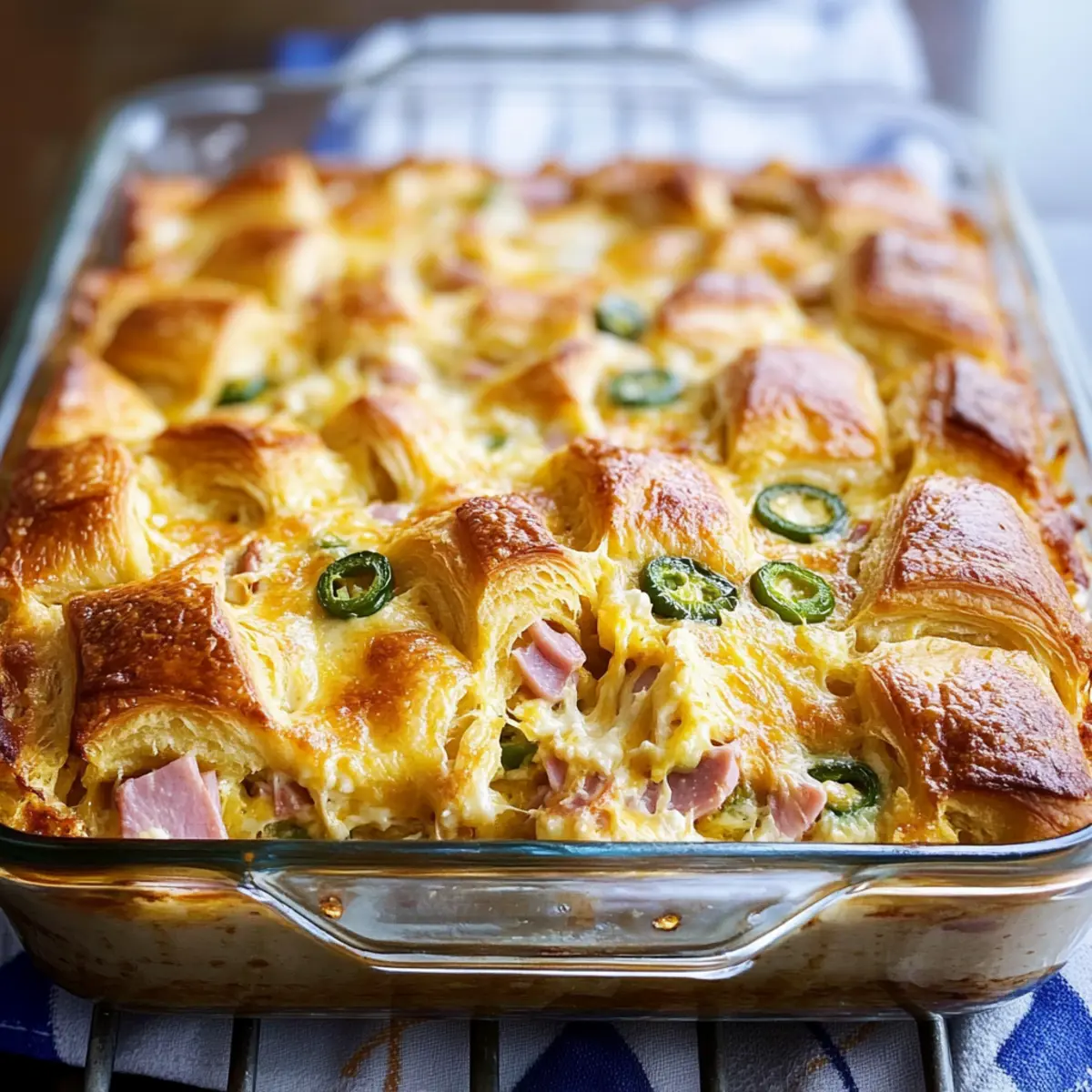 As I pulled the golden, puffy casserole from the oven, a savory aroma wafted through the kitchen, instantly whisking me back to cozy Sunday mornings. This Creamy Crescent Roll Breakfast Casserole combines fluffy crescent rolls with hearty ham and gooey cheese, transforming a simple breakfast into a delightful feast. The best part? It takes less than an hour to prepare, making it the perfect solution for both busy mornings and brunch gatherings with friends. Plus, it’s easy to customize: swap in bacon or add some fresh spinach for a nutritious twist! Are you ready to learn how to whip up this crowd-pleasing dish that will have everyone asking for seconds?