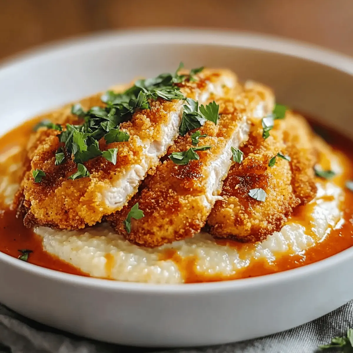 Fresh Garnish: Don’t forget to garnish your dish with fresh parsley or cilantro; it not only adds color but enhances the overall flavor of your Crispy Fried Chicken Cutlets over Creamy Grits.