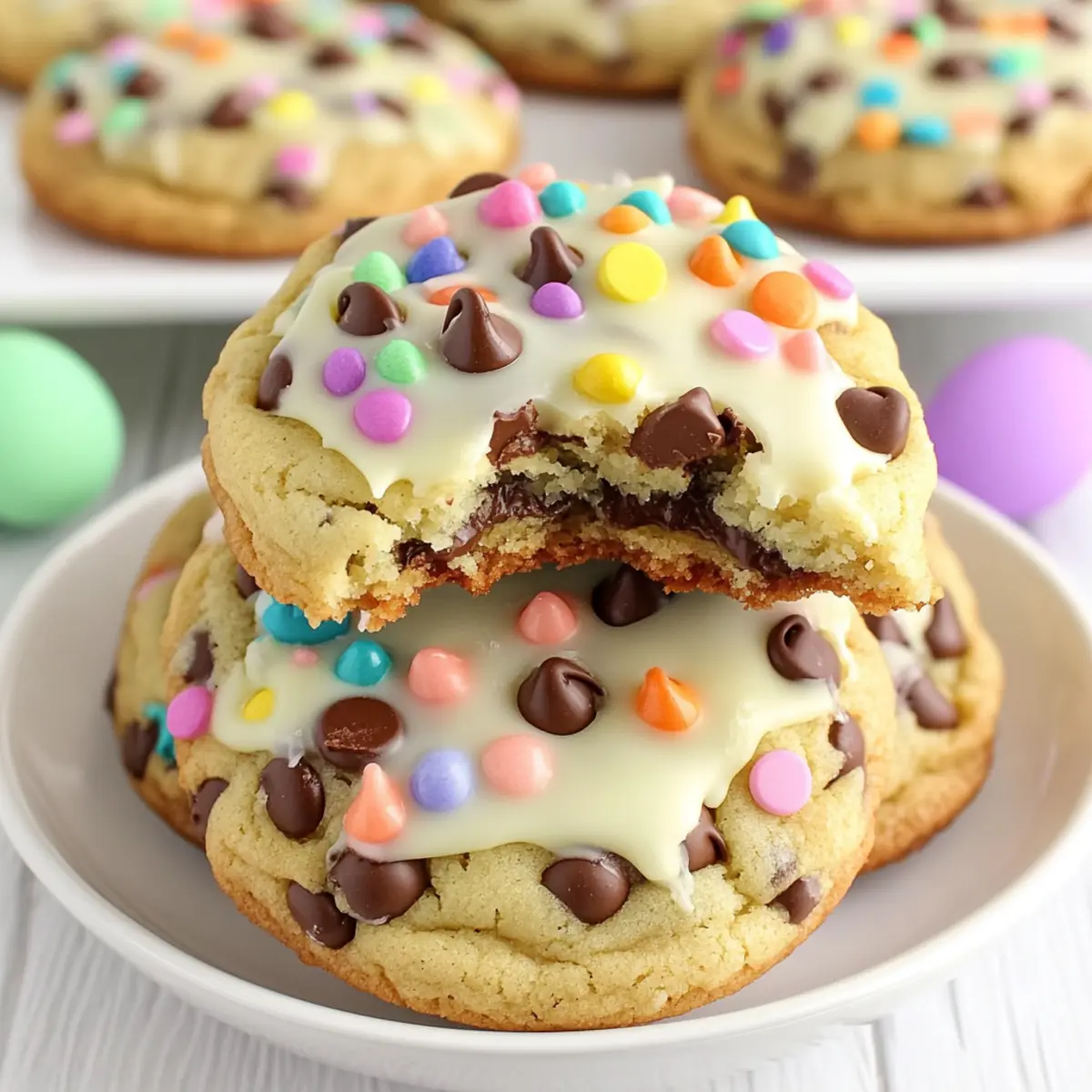 Easter Chocolate Chip Cookies with Creamy Vanilla Bark Magic