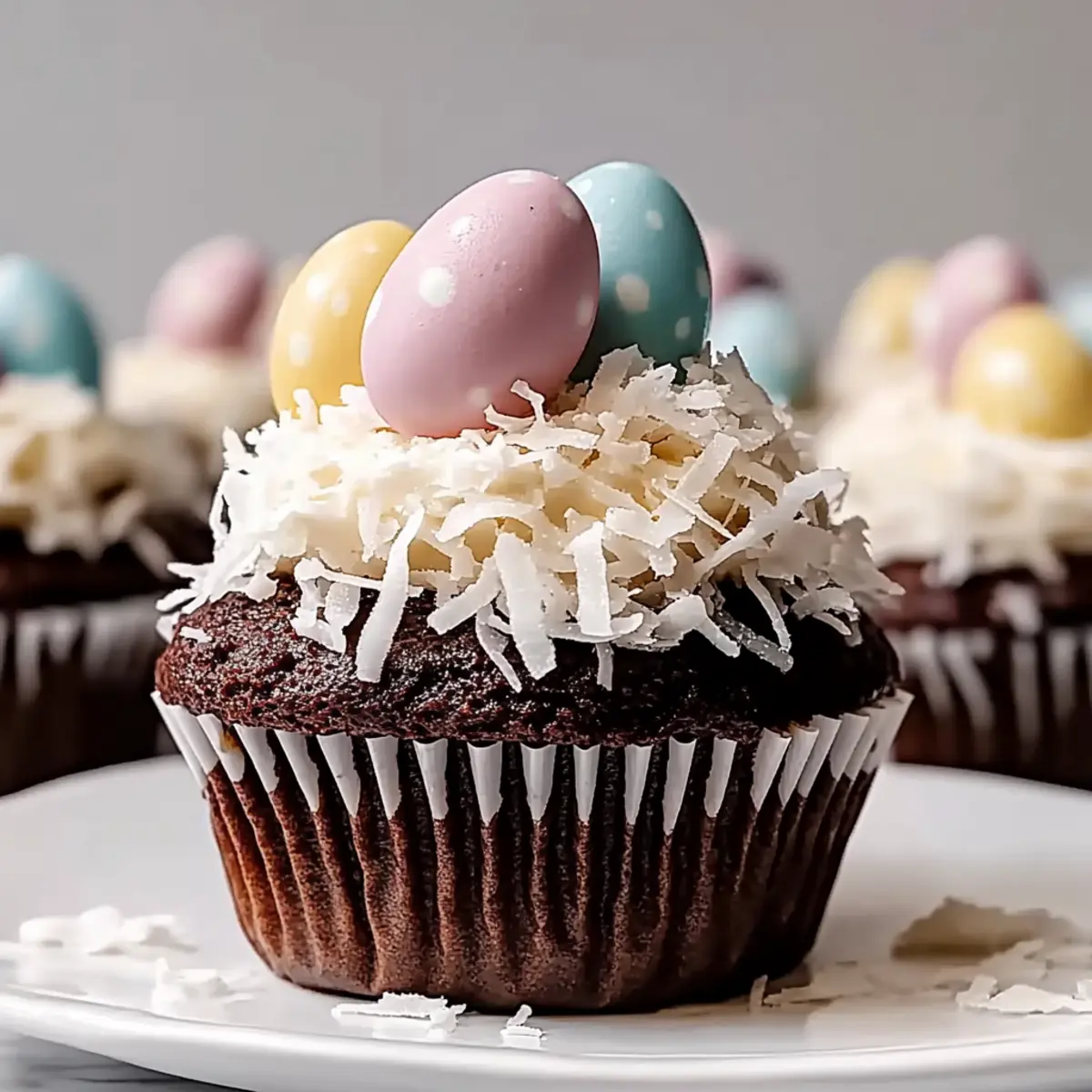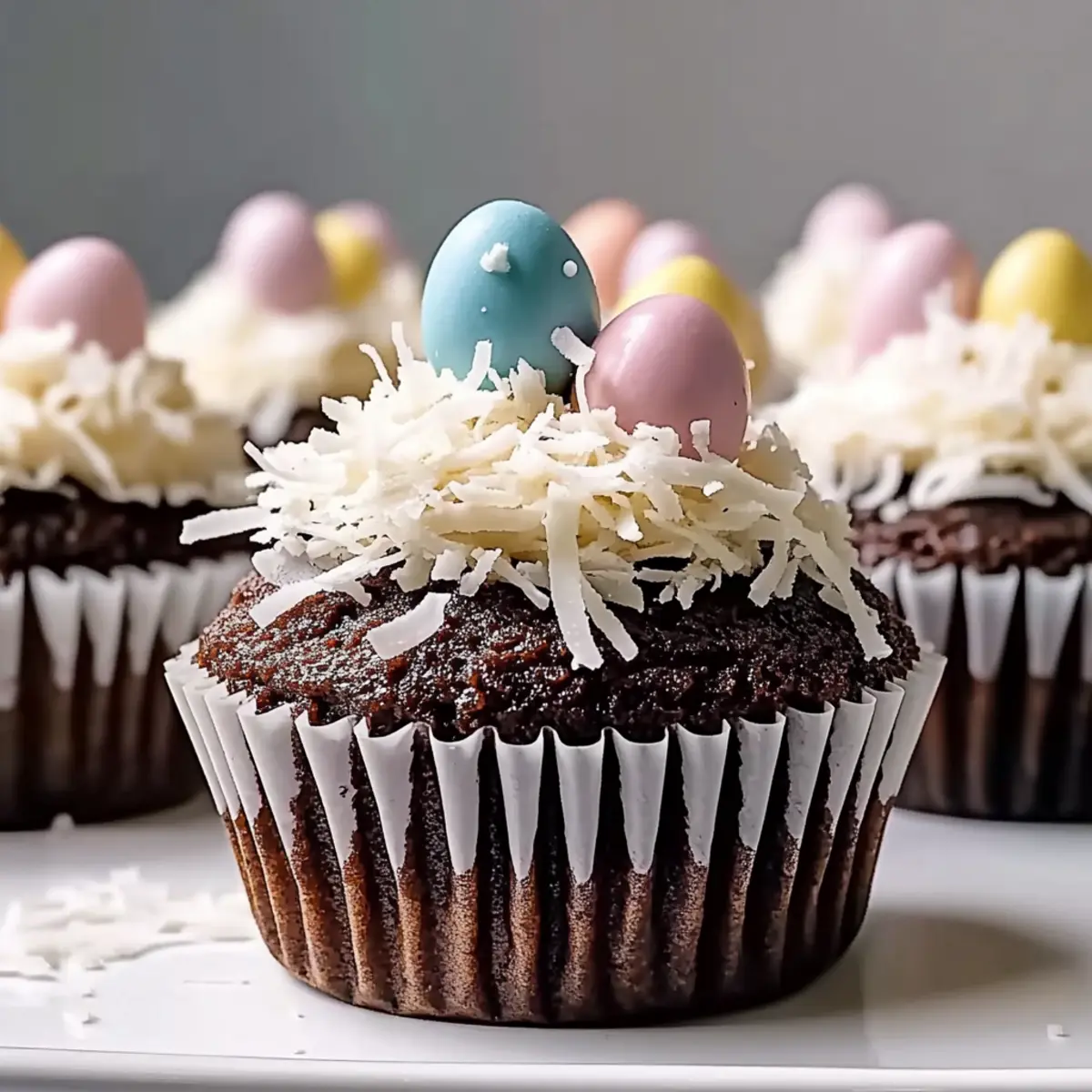 Decadent, these cupcakes bring a rich chocolate and coconut flavor that will have everyone coming back for more. Easy to make, even novice bakers can achieve bakery-quality results in just a couple of steps! Festive appeal comes from the colorful candy-coated eggs topping each creation, making them perfect for holiday gatherings. Moist and fluffy, the texture is pure delight, thanks to the chocolate ganache center that oozes sweetness. If you’re looking for more celebrations ideas, try out my delicious Sticky Chicken Bowls or serve these alongside Mini Dessert Cake for a charming dessert spread!