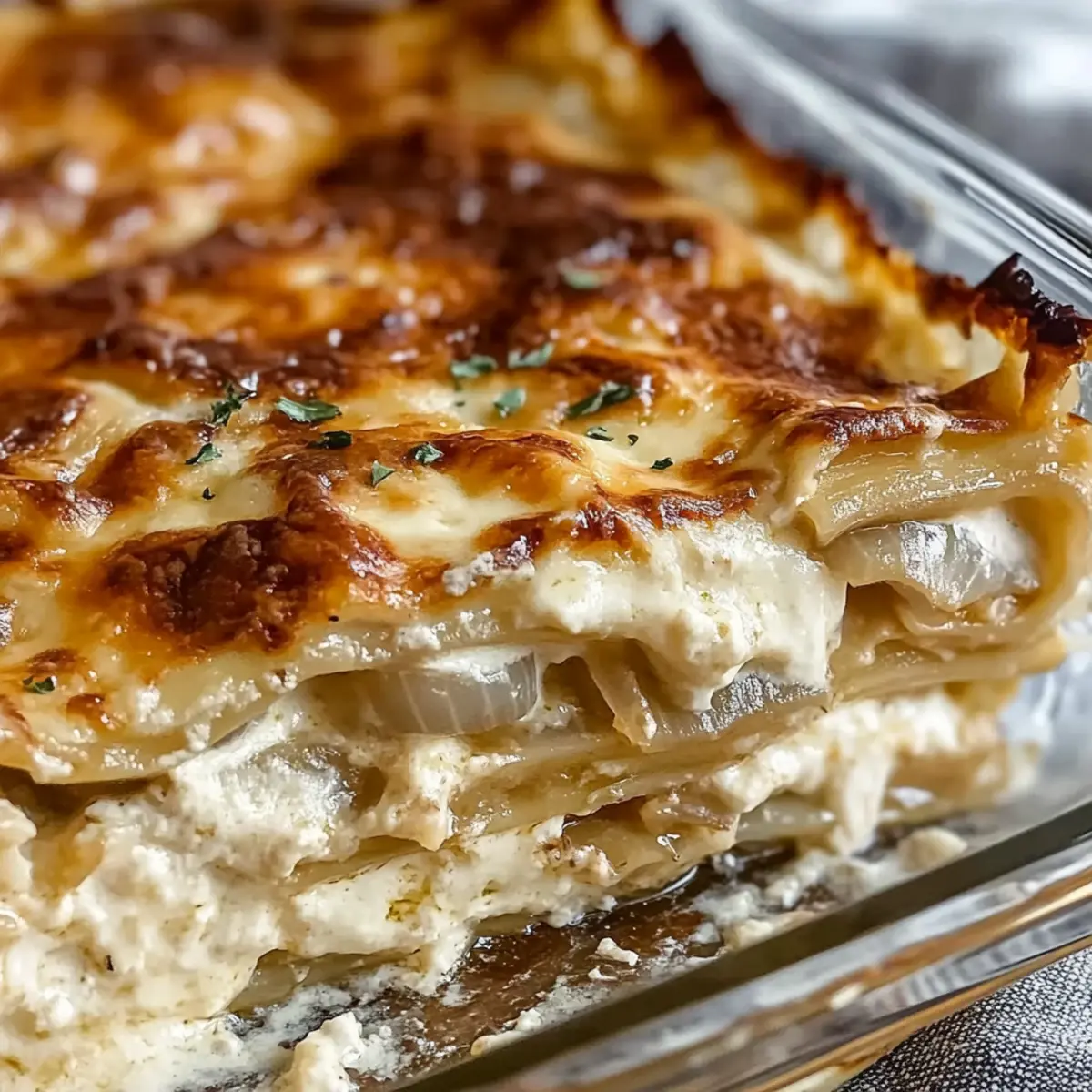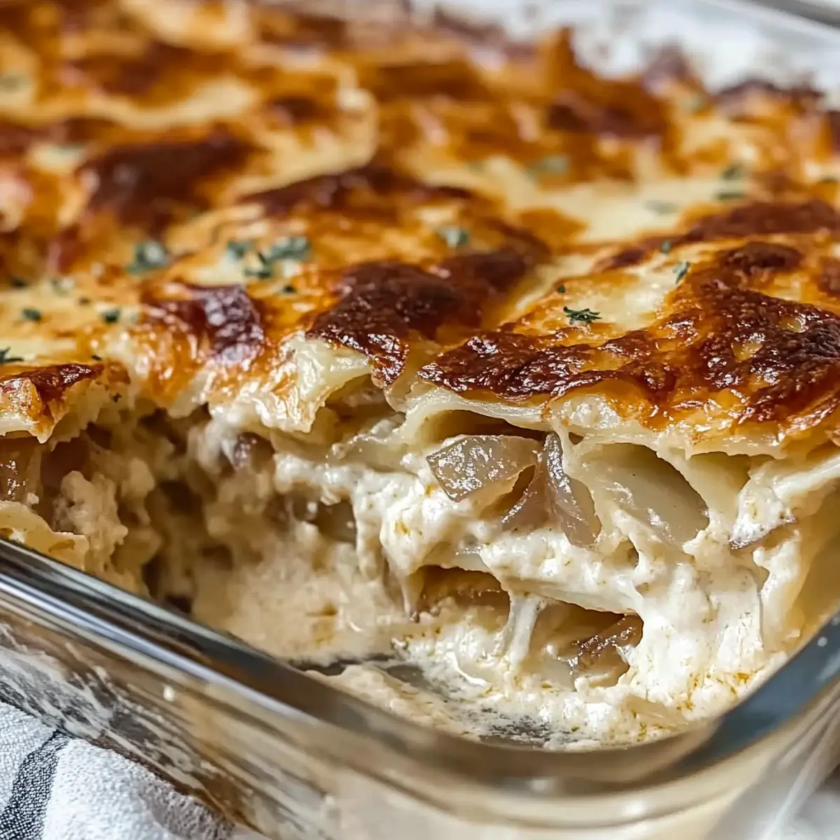 Comforting Layers: This French Onion Lasagna brings together the best of both worlds—the deep, savory notes of caramelized onions and the cozy layers we adore in lasagna.