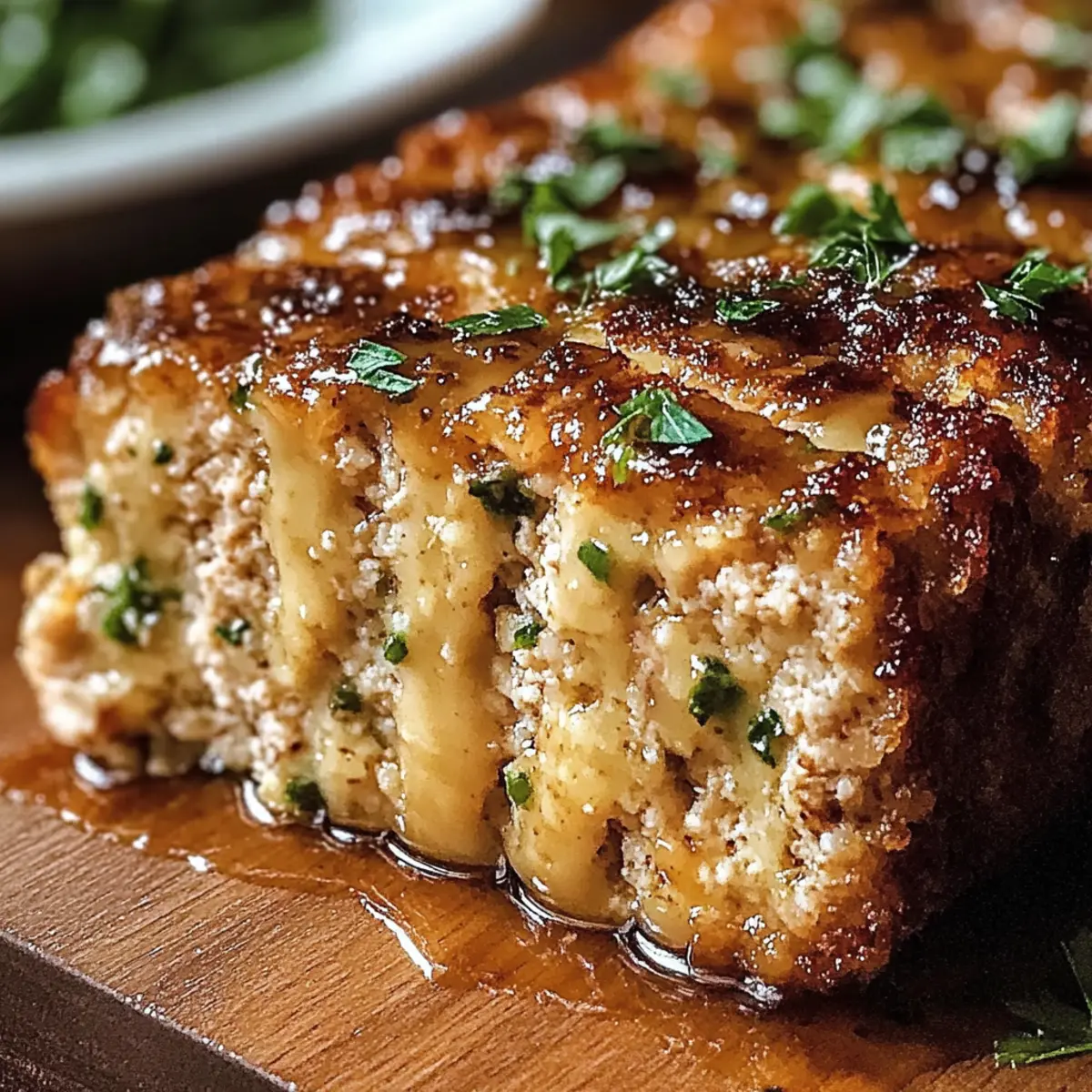 While the meatloaf bakes, prepare the glaze. In a small saucepan, melt the unsalted butter over low heat. Add minced garlic and sauté for 1-2 minutes until fragrant, then mix in additional Parmesan cheese and chopped parsley until slightly thickened. This glaze will add a rich, creamy finish to your Garlic Parmesan Chicken Meatloaf.