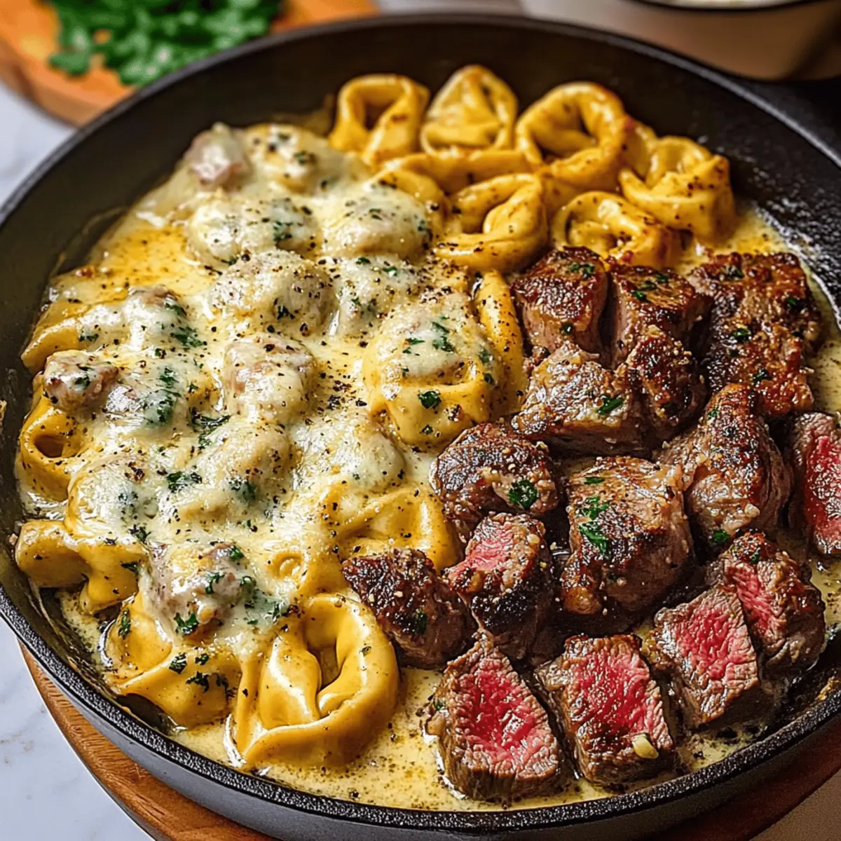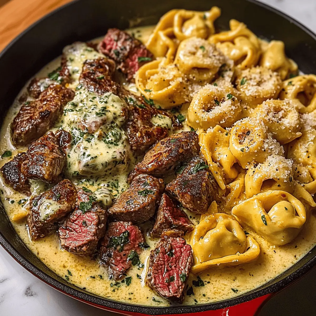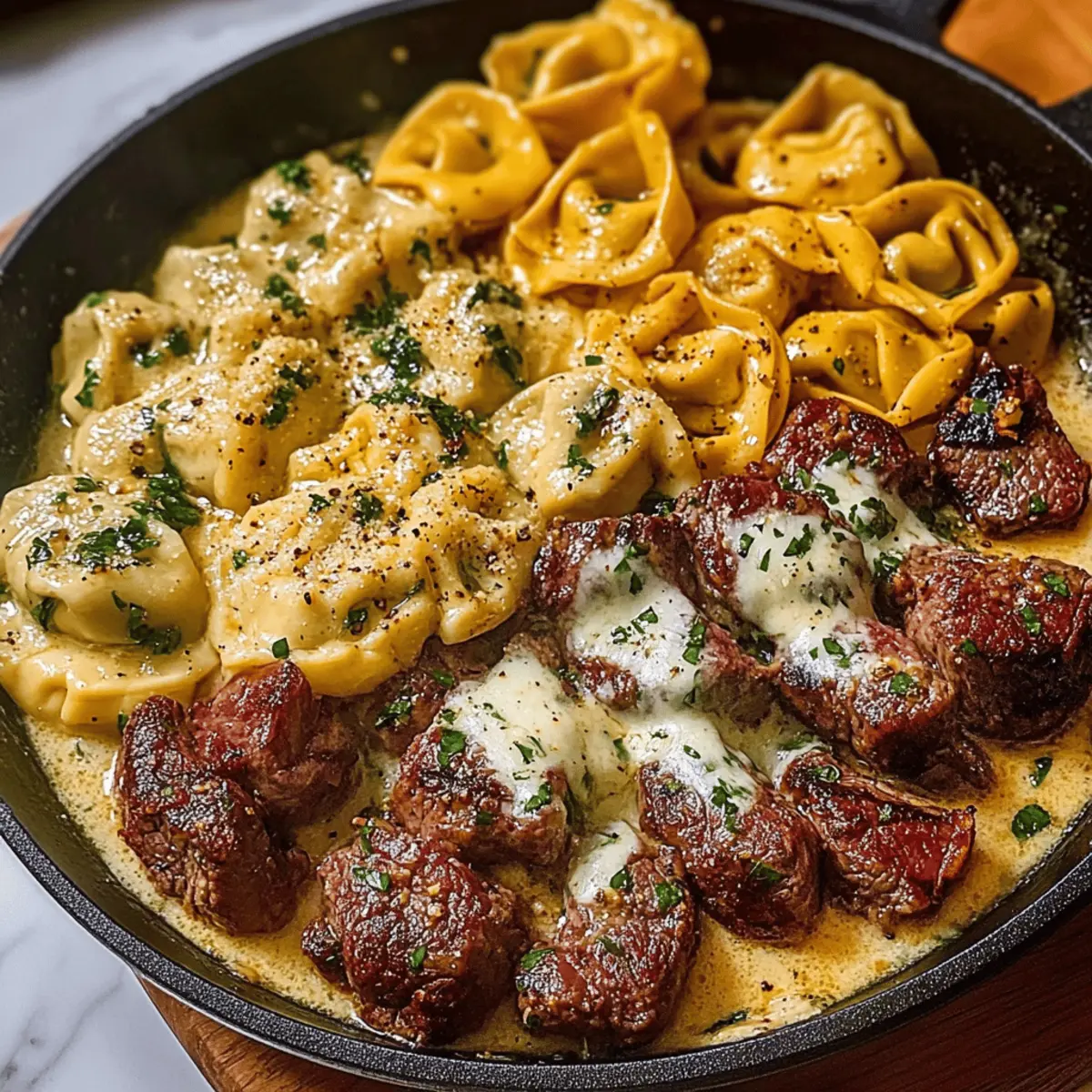 Garlic Steak & Cheese-Filled Tortellini Skillet Bliss