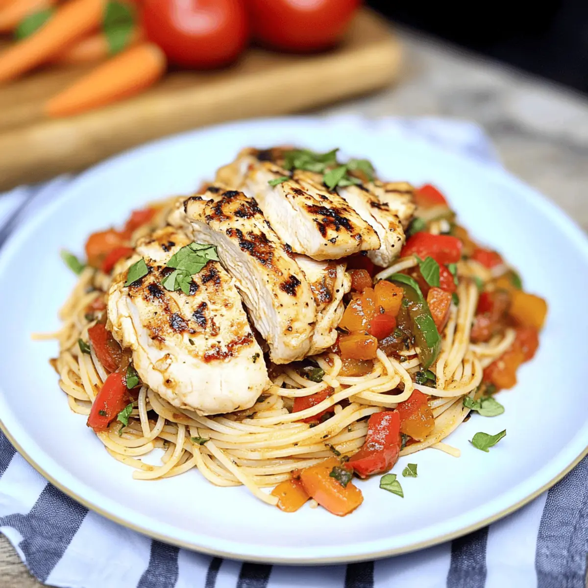 These Grilled Chicken Spaghetti are a lifesaver for meal prep enthusiasts! You can grill the chicken and prepare the homemade red sauce up to 24 hours in advance, storing them separately in airtight containers in the refrigerator to maintain quality. The spaghetti can also be cooked up to 3 days ahead; just ensure to toss it lightly with olive oil to prevent sticking. When ready to serve, simply reheat the chicken and sauce on the stove or in the microwave, and cook the pasta until warmed through. By prepping these components in advance, you’ll save precious time on busy weeknights while still enjoying a delicious, homemade meal!
