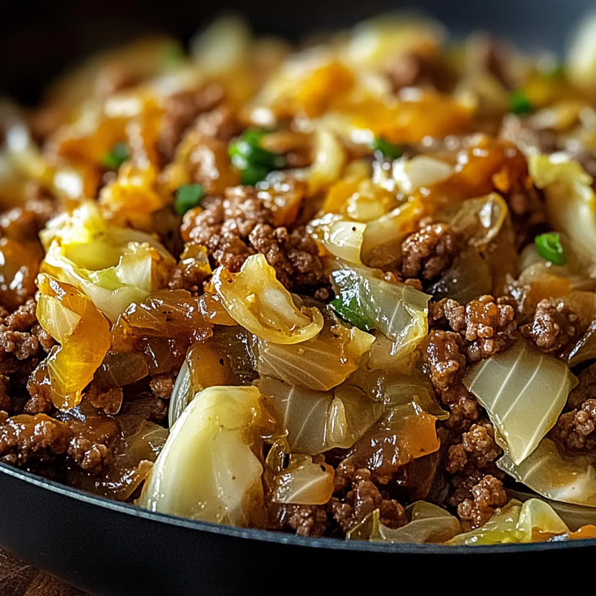 As I stood in the kitchen, the aroma of sautéing garlic and onion wafted through the air, instantly bringing back memories of family dinners filled with laughter and warmth. In this busy world, we often crave simple comforts, and that’s where this One-Pan Ground Beef and Chopped Cabbage Delight steps in. Not only is it a quick dinner solution, but it’s also incredibly customizable—perfect for those nights when you just want something satisfying without spending hours at the stove. Packed with healthy, hearty ingredients, this dish provides a fulfilling meal that feels indulgent with minimal effort. Plus, you can easily swap in ground turkey or veggie proteins for a fun twist! So why not join me on this culinary adventure and elevate your weeknight meals? What variations will you try today?
