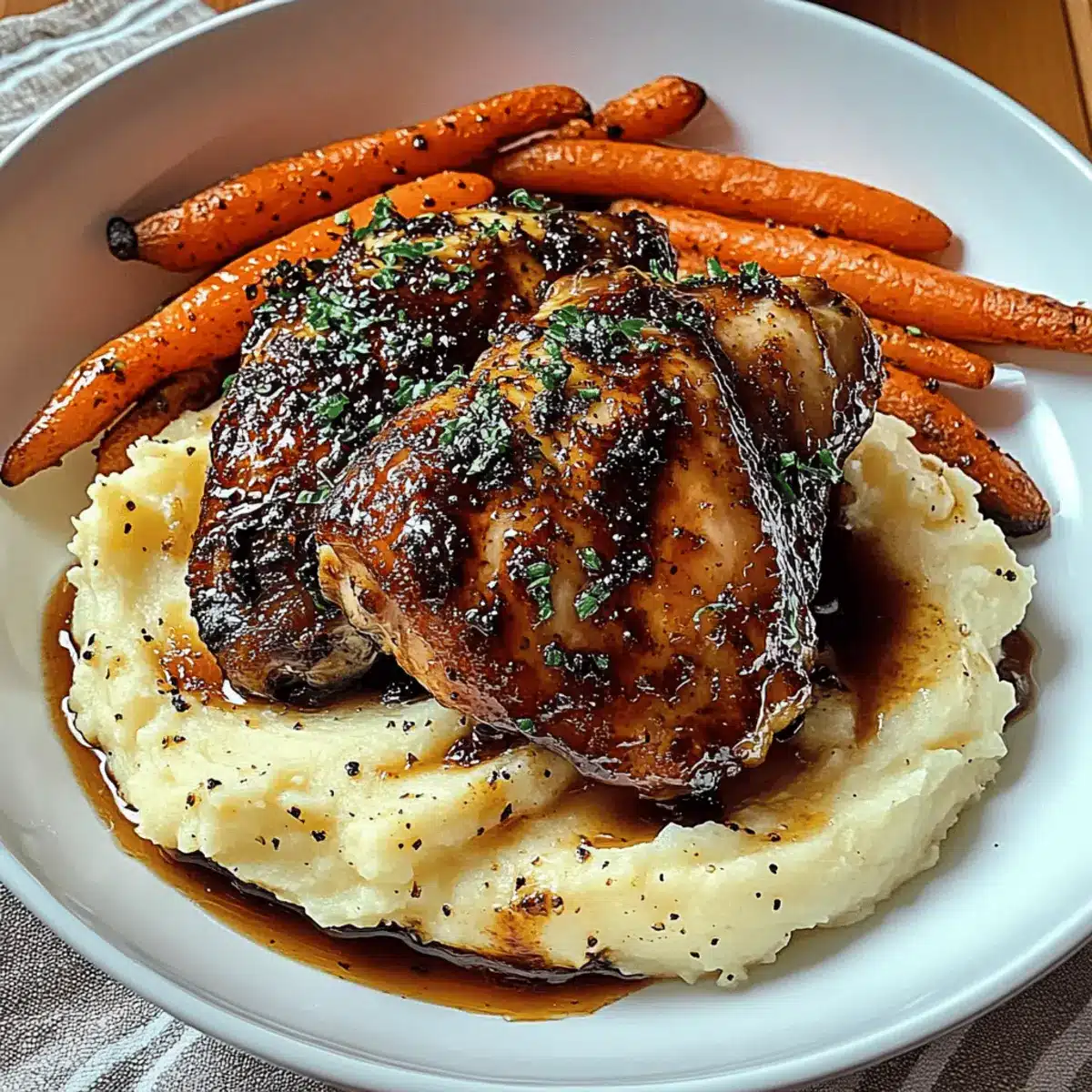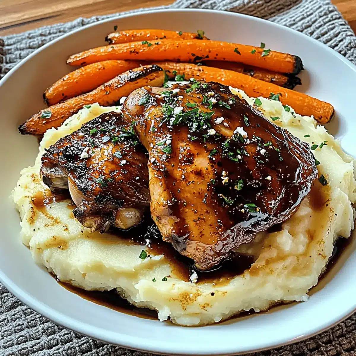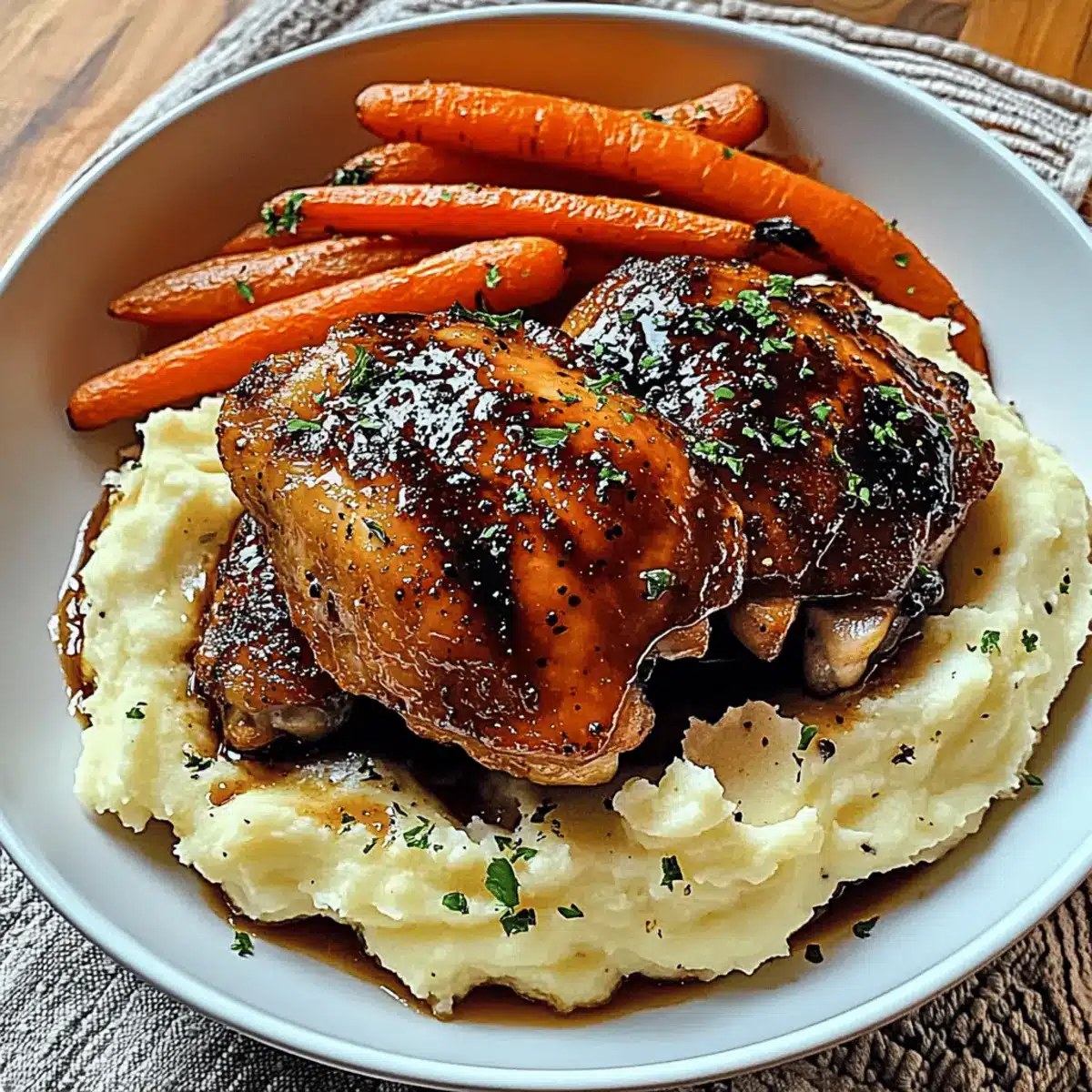 The inviting aroma wafting through my kitchen brings with it memories of cozy gatherings and laughter-filled evenings. That’s how I feel every time I whip up these Honey Balsamic Chicken Thighs, a dish that effortlessly combines the sweet tang of balsamic vinegar with the richness of honey. Paired with creamy goat cheese mashed potatoes and roasted carrots, it transforms an ordinary dinner into a comforting feast that everyone will love. Not only is this recipe a crowd-pleaser, but it’s also incredibly versatile—swap out chicken thighs for skinless breasts or add sweet potatoes for a touch of sweetness. Get ready to indulge in a warm and satisfying meal that caters to all dietary needs. Curious about how to bring this delightful dish to life? Let’s dive in!