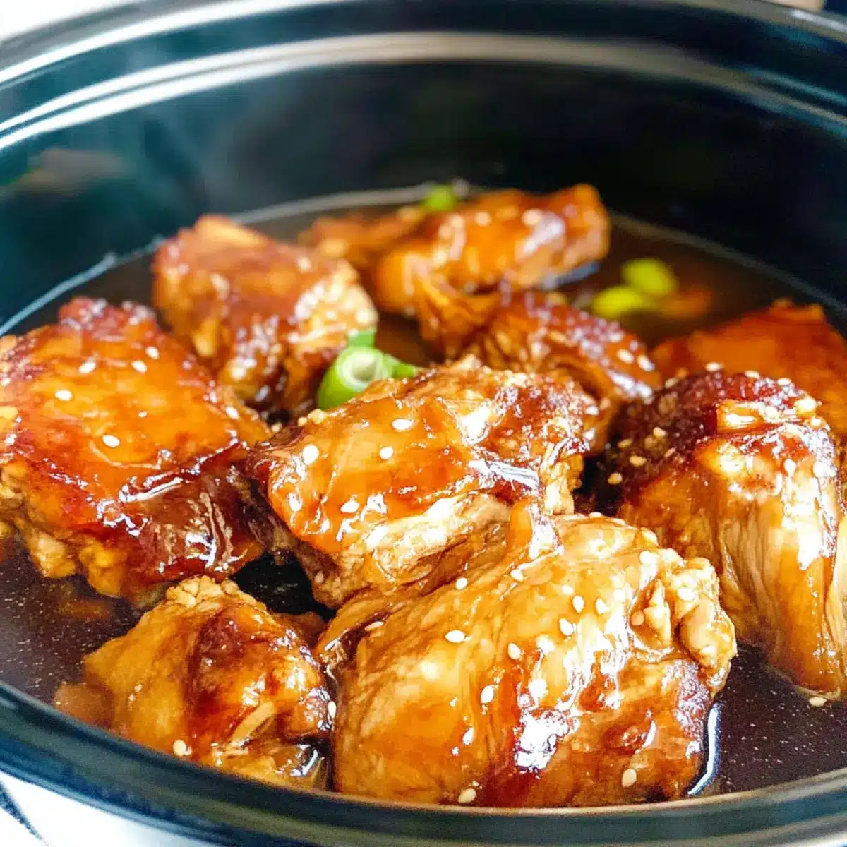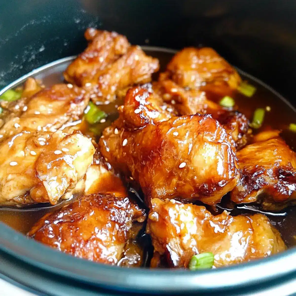Once the chicken is seared, transfer it to the slow cooker, placing it directly into the savory sauce. Ensure that each piece of chicken is well-coated in the mixture. This step is crucial for infusing the chicken with robust flavors as it cooks slowly, intensifying the sweetness of the honey and the umami of the soy sauce.