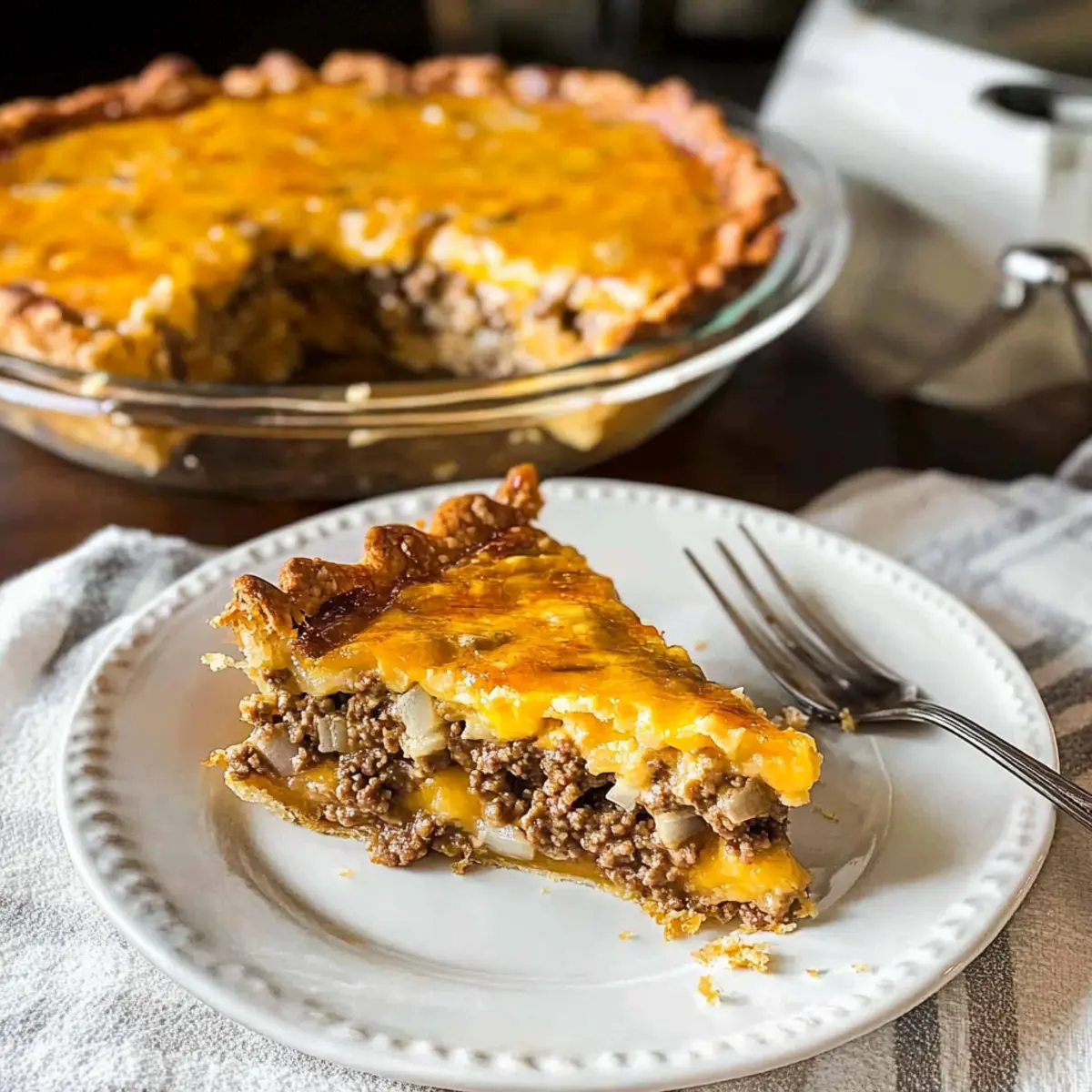 Crowd-Pleaser: This Impossible Cheeseburger Pie is sure to impress both kids and adults alike, making it a staple for family dinners. Try pairing it with a fresh salad for a complete meal! If you enjoy recipes like these, check out our delicious Gingersnap Pumpkin Pie or the comforting Leek Thyme Pie.