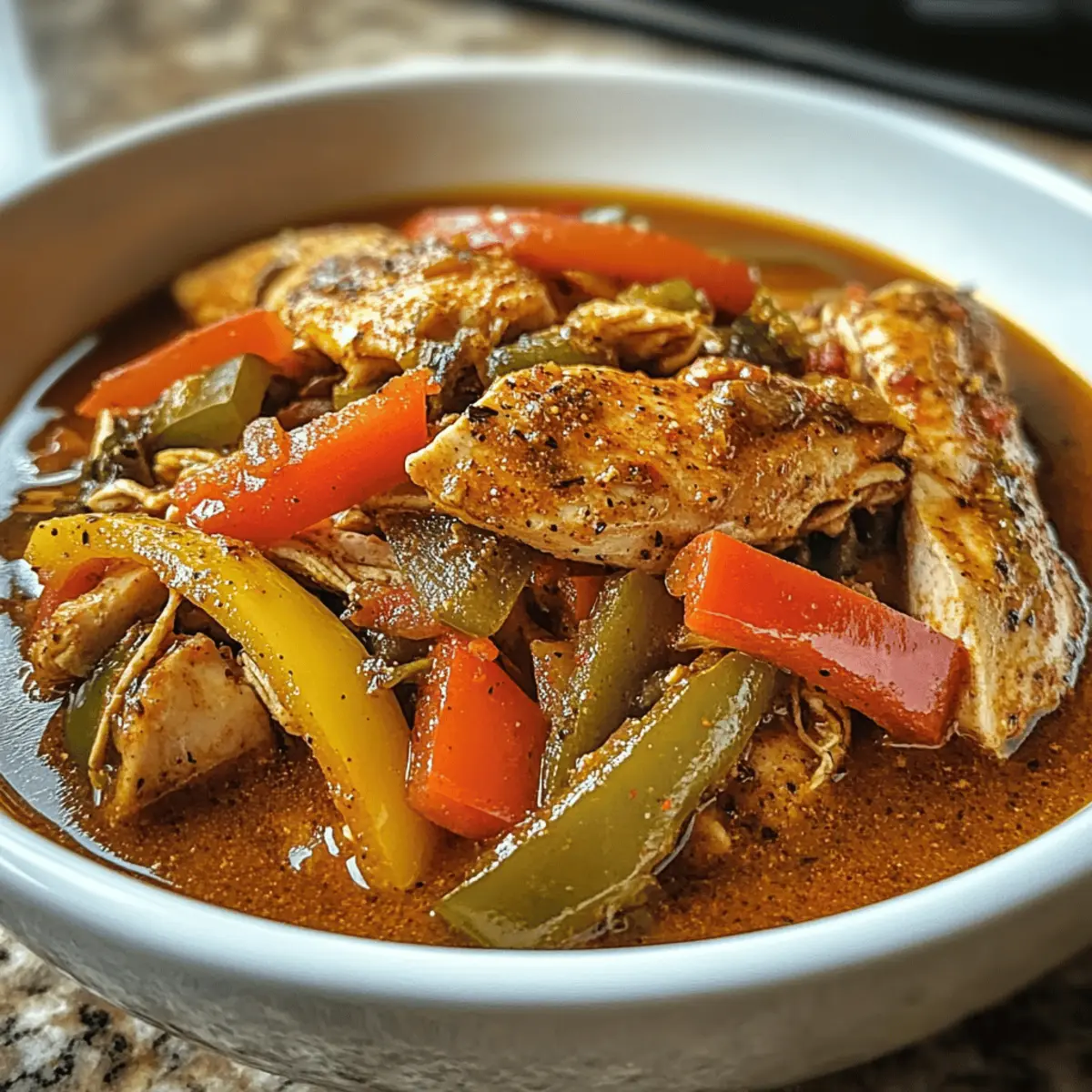 Next, place the seasoned chicken fillets in the bottom of your crockpot, laying them flat for even cooking. Slice the bell peppers and onions, then scatter them on top of the chicken, adding layers of vibrant colors and sweet flavors. Finish by mincing the garlic and sprinkling it over the entire mixture, ensuring it mingles well with the chicken and vegetables.