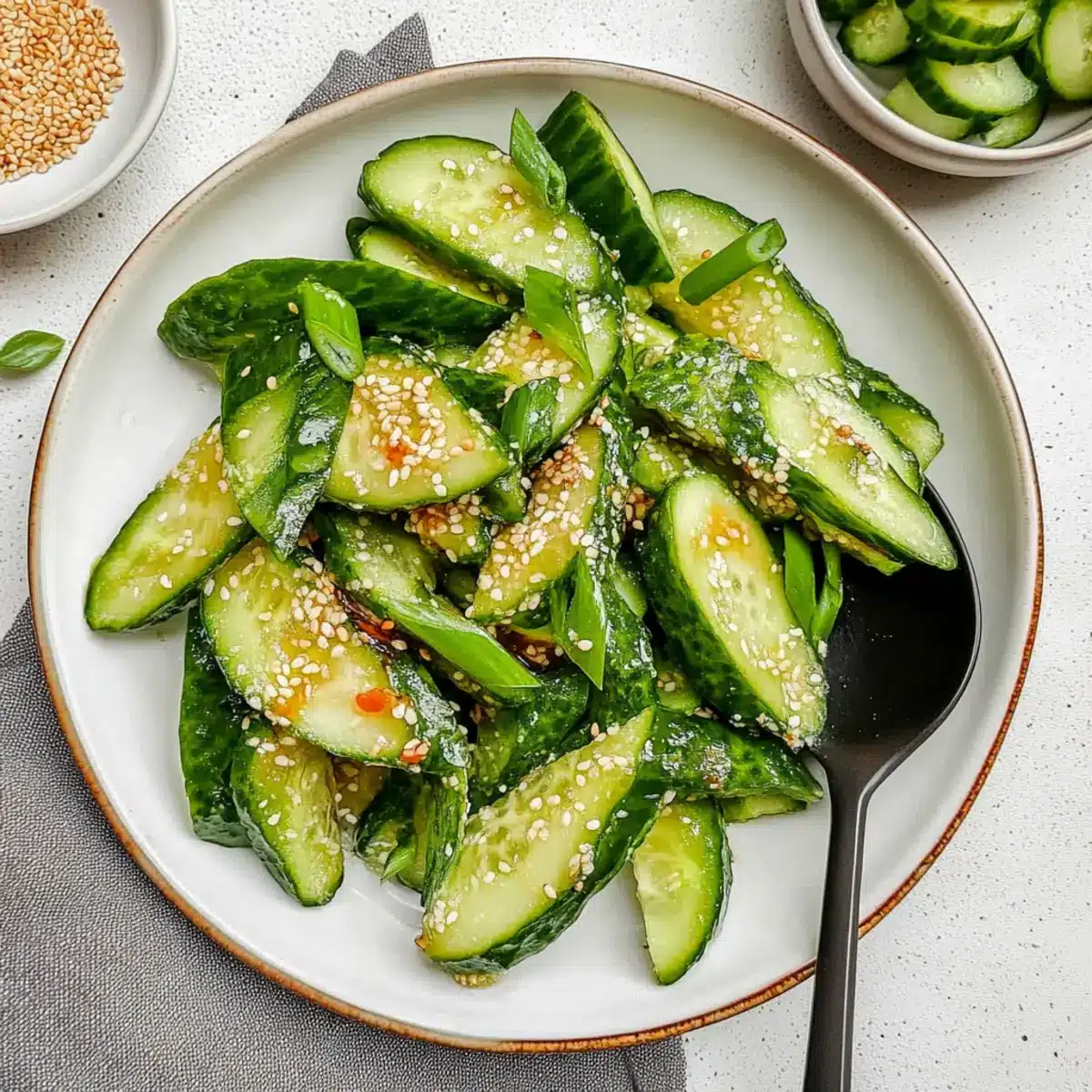 Crisp Texture: The unique smashing technique creates a delightful crunch, allowing the cucumbers to soak up the dressing beautifully, guaranteeing every bite is bursting with flavor.