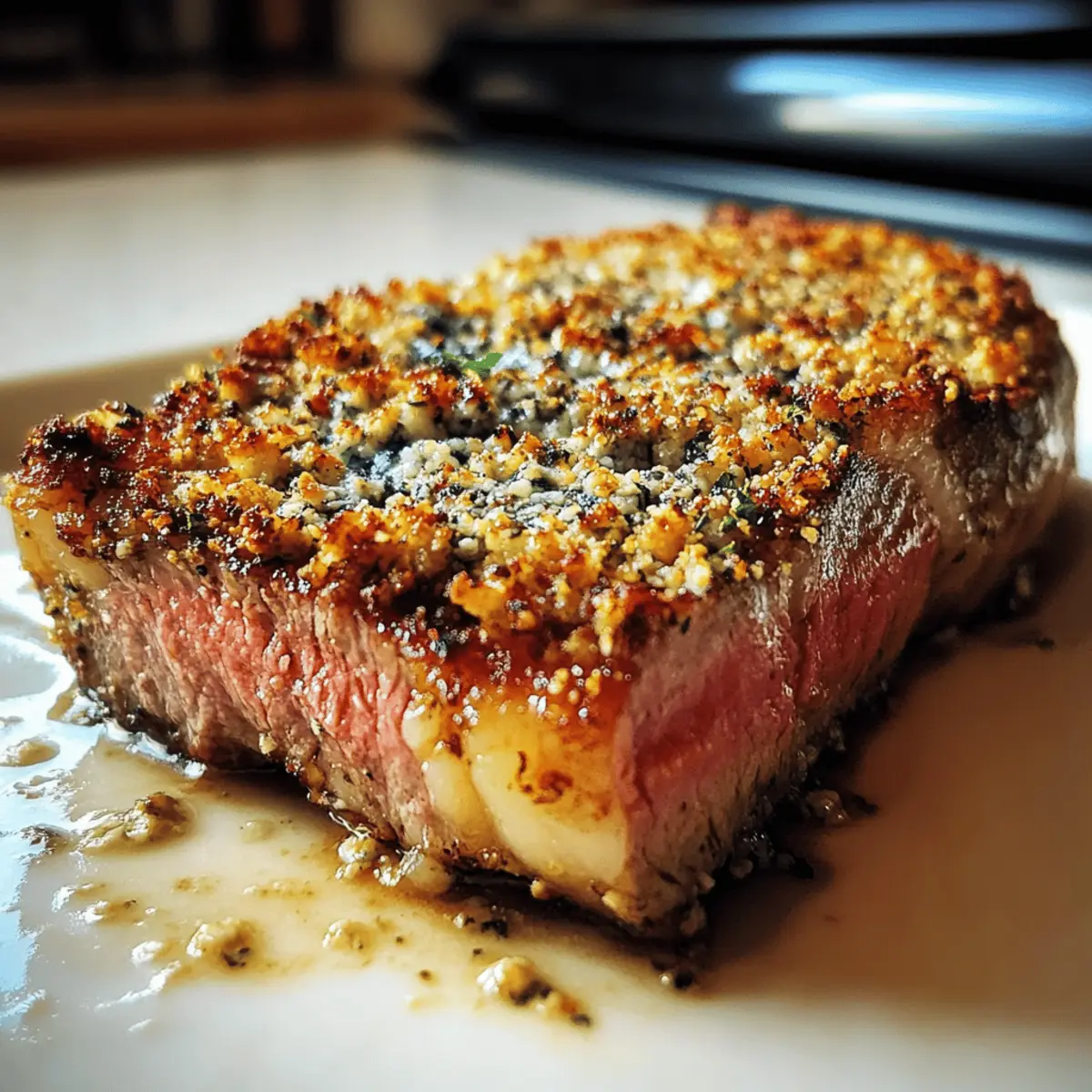No worries! If the topping doesn’t adhere well, it’s essential to press the cheese mixture firmly onto the steak before baking. This ensures a good bond. Additionally, if your mixture is too dry, consider adding a bit more melted butter to help it stick better.