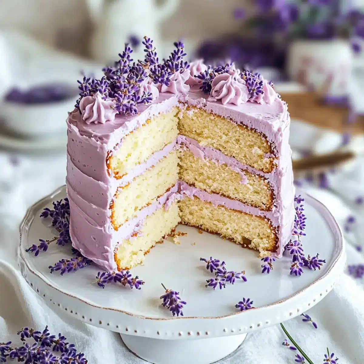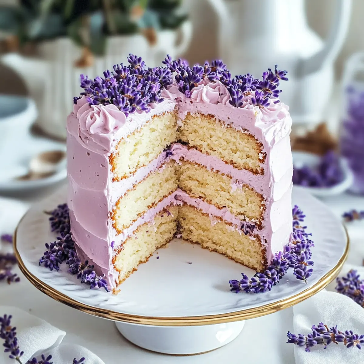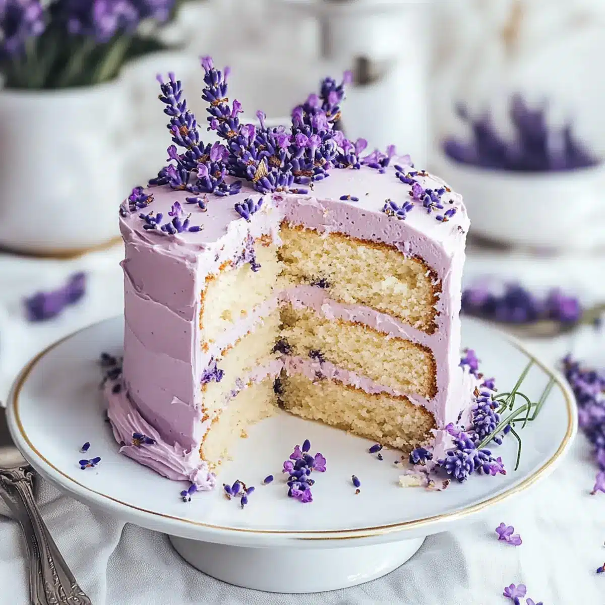 Elevate your dessert game with this elegant Lavender Cake; pair it with a refreshing cup of chamomile tea for an indulgent experience!
