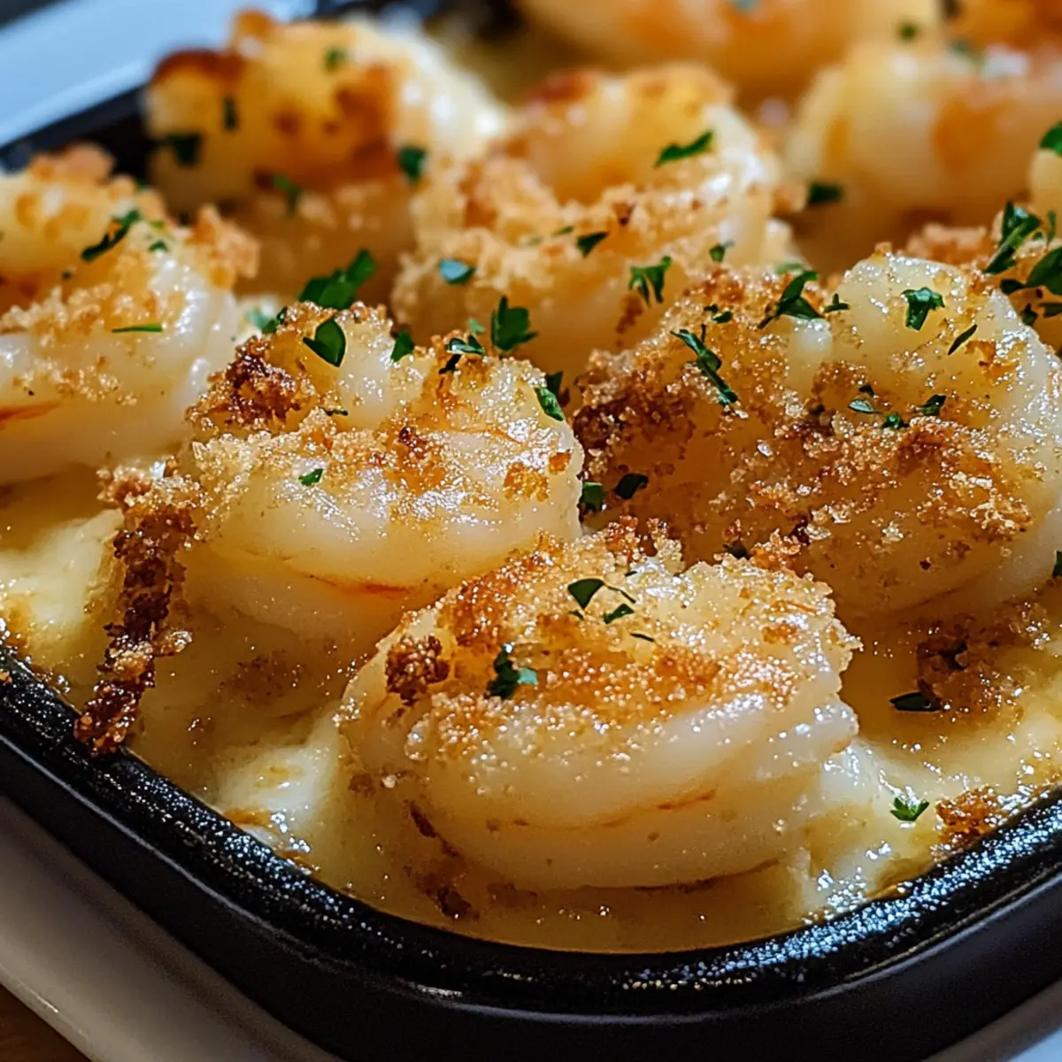- Bake for 10-12 minutes until shrimp are opaque and the topping is golden brown.