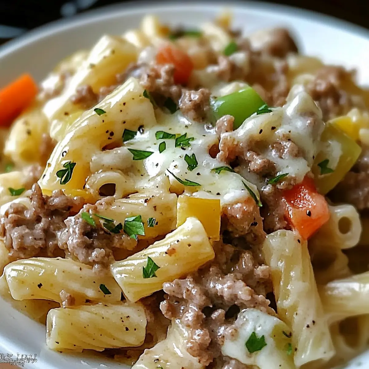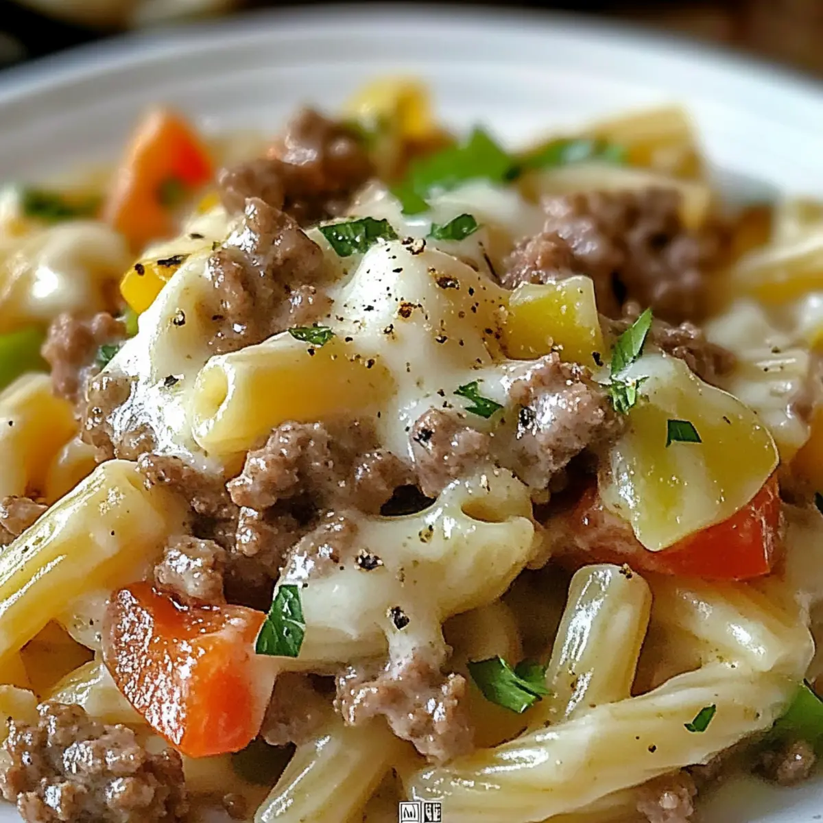In the midst of a hectic week, when dinner feels like a mini crisis looming over my schedule, this Cheesy One-Pan Philly Cheesesteak Pasta swoops in to save the day. It’s the perfect fusion of beloved cheesesteak flavors transformed into a comforting and family-friendly pasta dish. With lean ground beef, vibrant peppers, and an irresistible blend of cheeses all simmered in a rich French onion gravy, you’ll find yourself savoring not just the meal, but the delightful aromas wafting through your kitchen. The best part? This one-pan wonder is ready in a flash, making it a go-to for those busy nights when you crave something hearty yet hassle-free. How does a creamy pasta that feels both indulgent and easy sound for your next dinner?