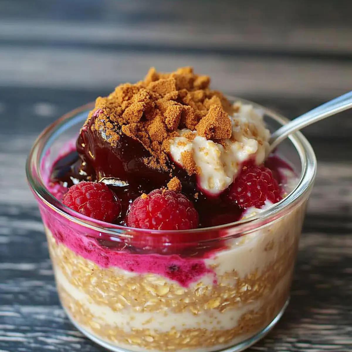 Nutrient-Rich: Packed with fiber and healthy fats, Raspberry & Biscoff Overnight Oats provide a nourishing breakfast or dessert option that keeps you satisfied.