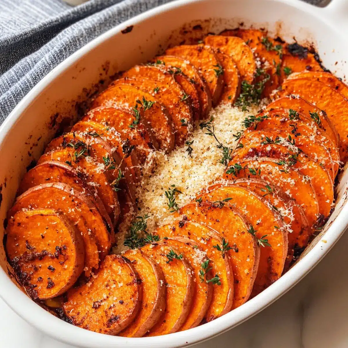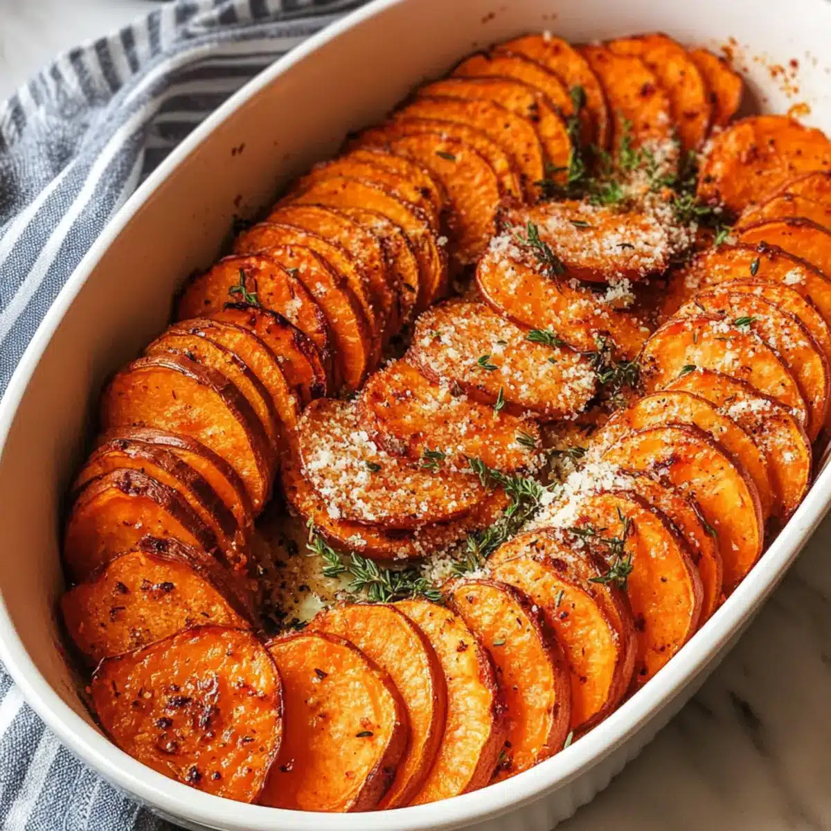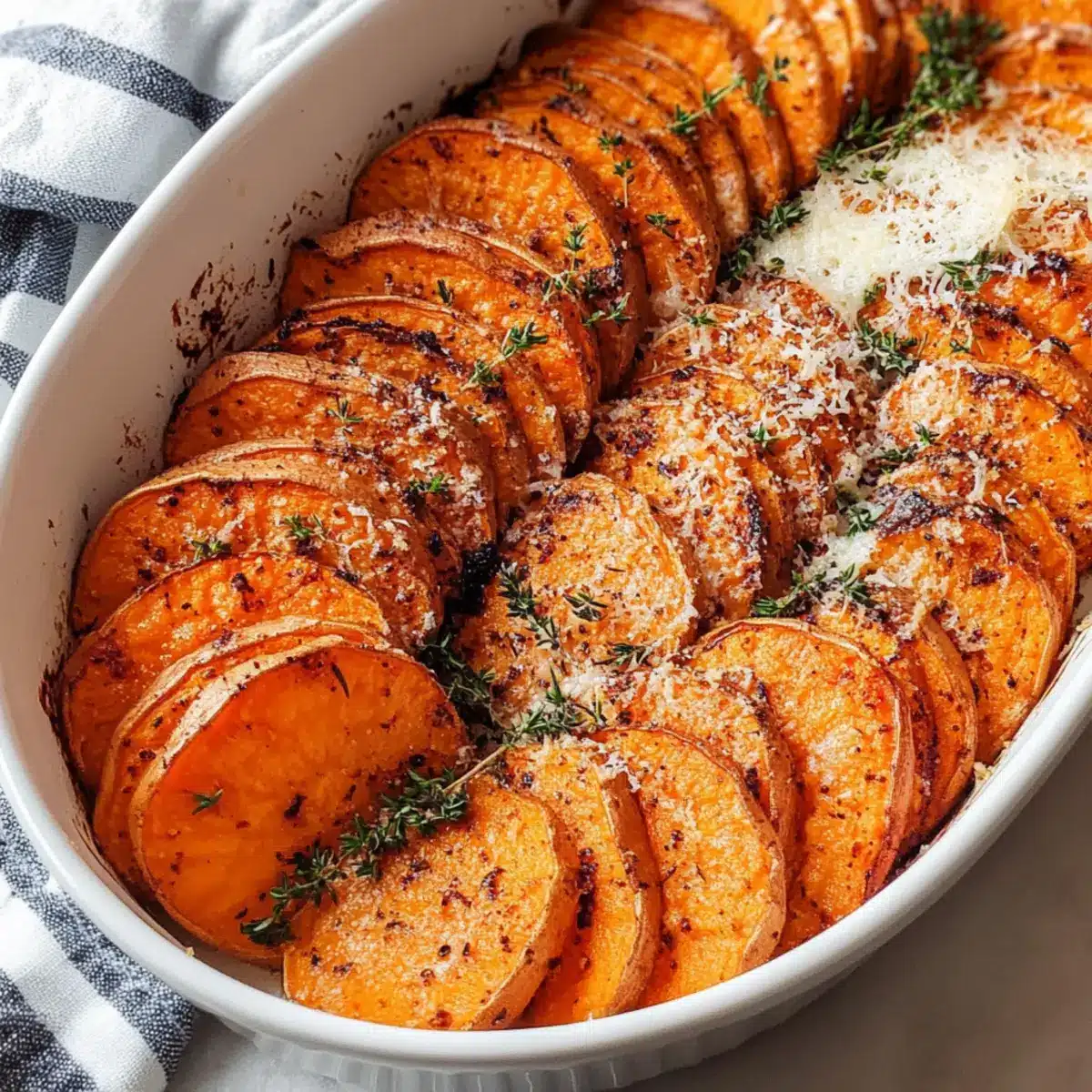 Savory Roasted Sweet Potatoes with Garlic and Parmesan Bliss