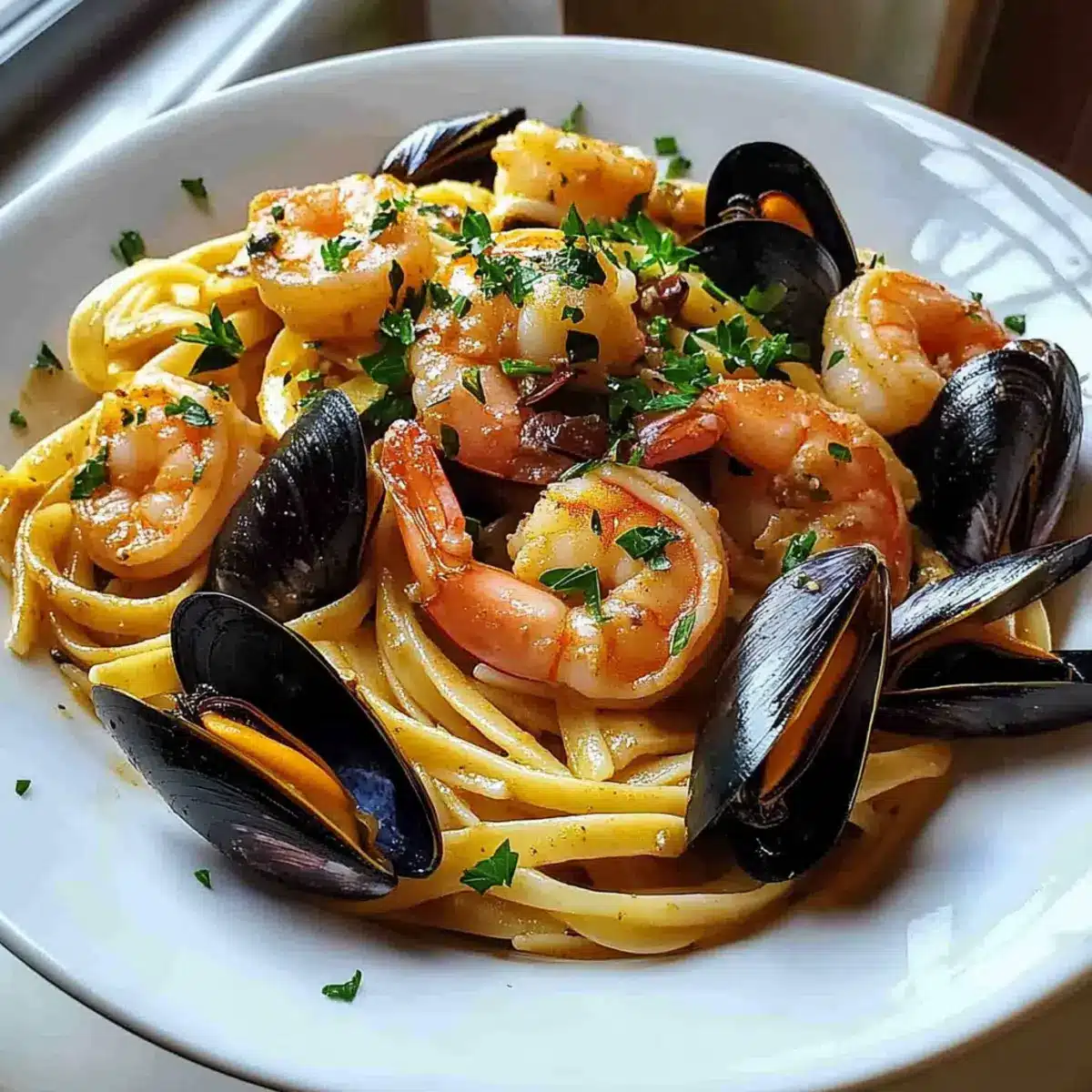 Savory Seafood Pasta with Linguine, Shrimp, and Mussels Delight