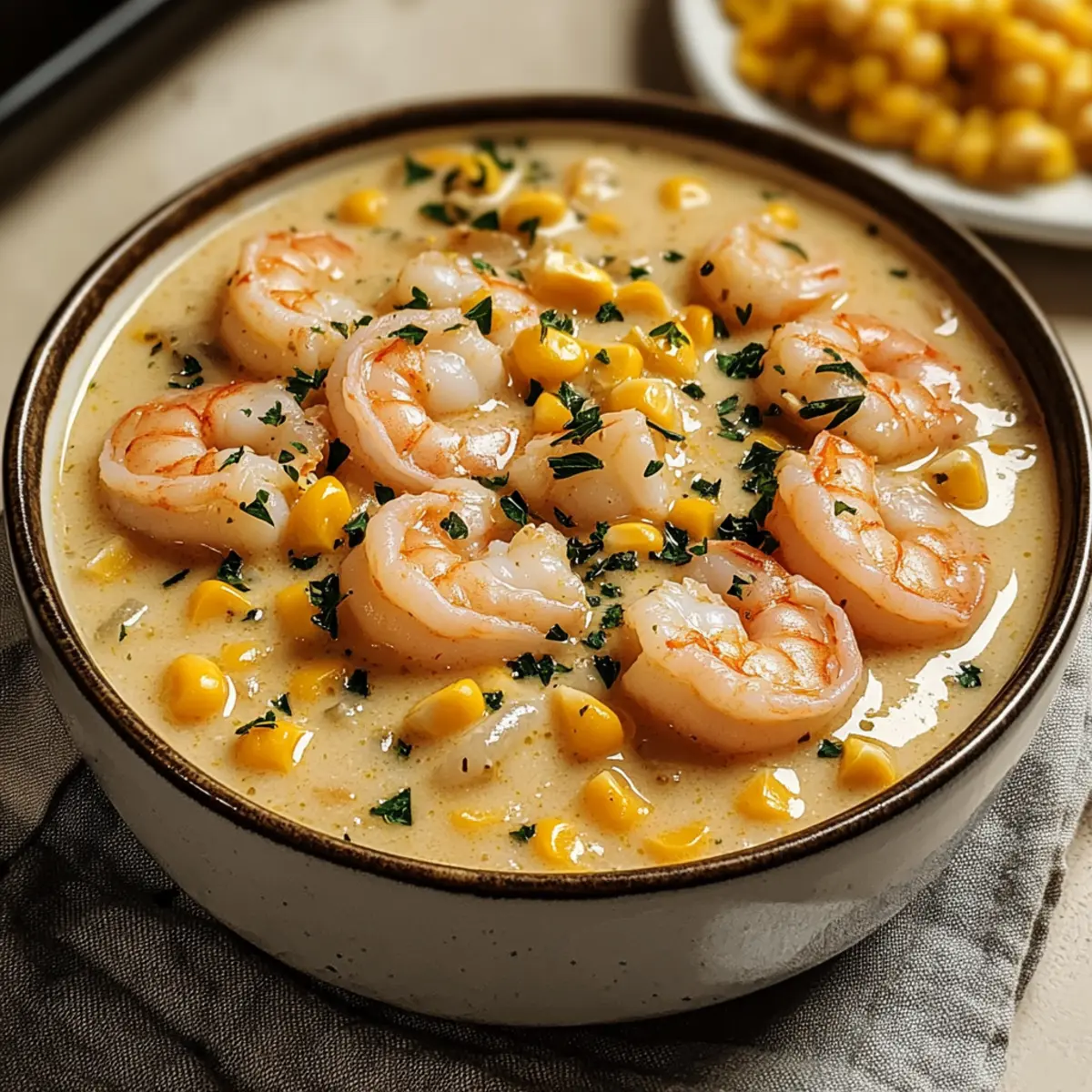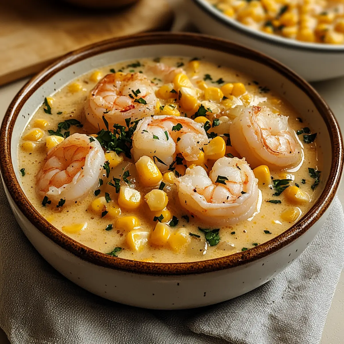 Ladle the creamy shrimp and corn chowder into bowls, garnishing each serving with freshly chopped parsley for a burst of color. Optional lemon wedges can be served on the side for those who want to add a refreshing zing. Enjoy this hearty meal hot, paired with crusty bread for the perfect comforting dinner experience.