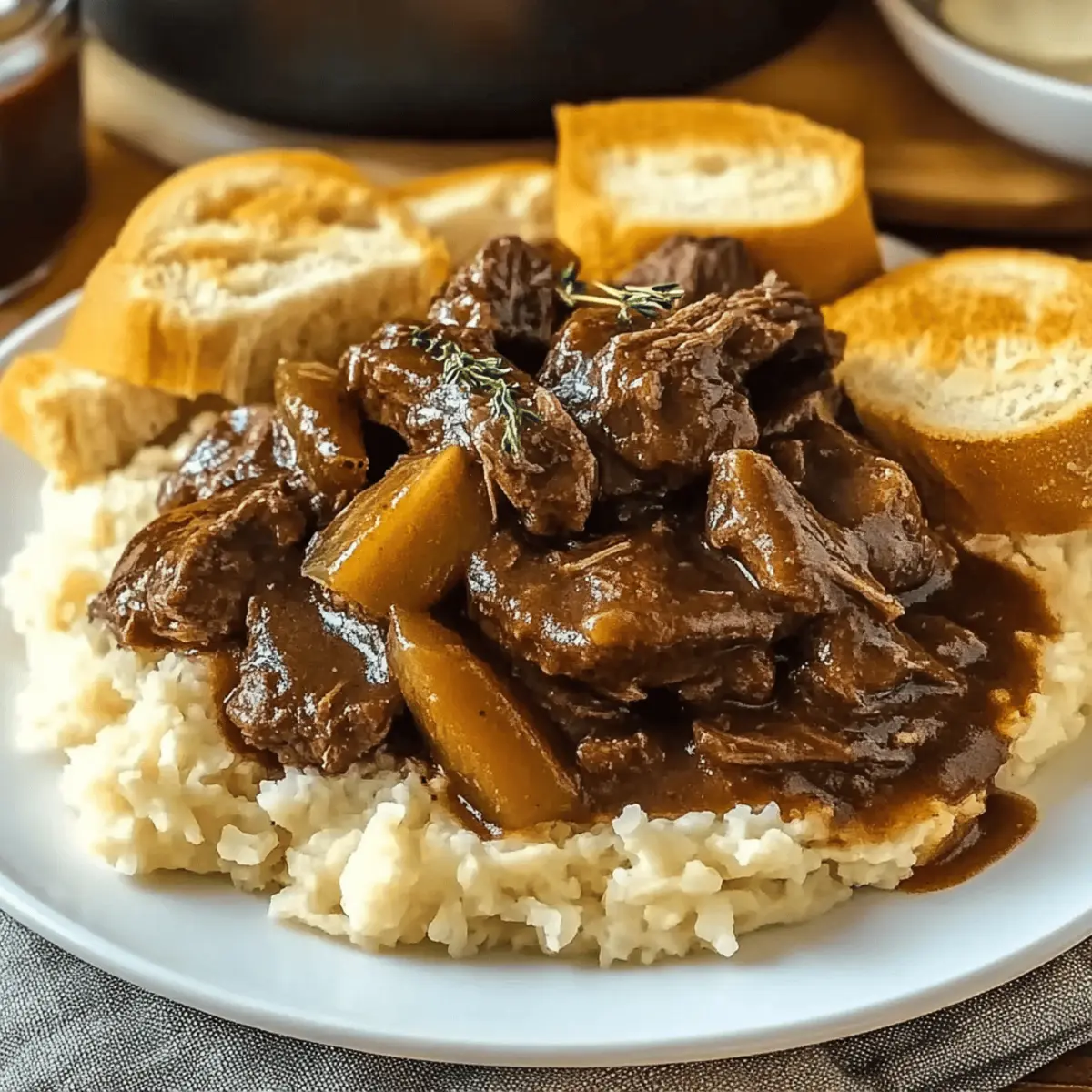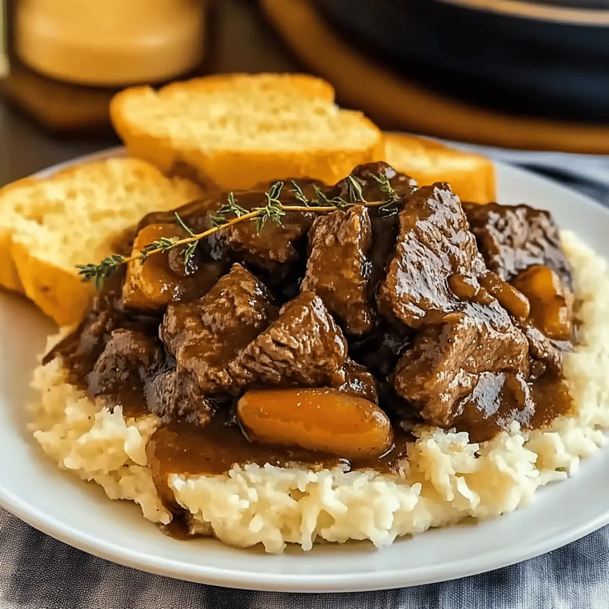 Creamy Mashed Potatoes: These buttery, velvety potatoes complement the rich gravy, making every bite a dreamy experience. Not only do they add heartiness, but their smooth texture contrasts beautifully with the chunks of beef and veggies.