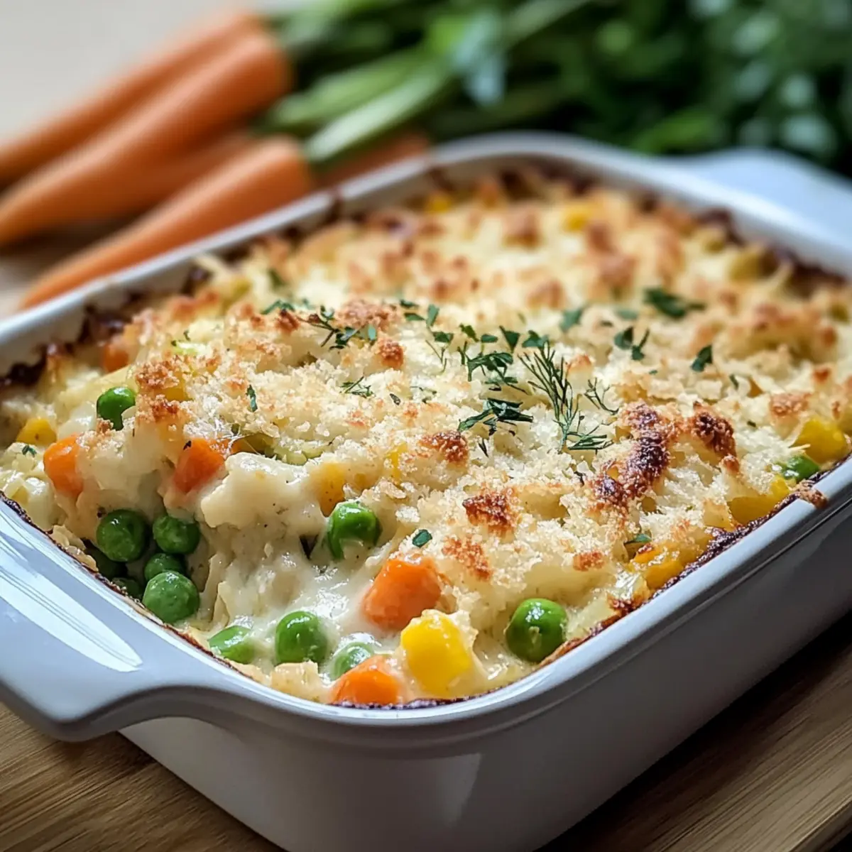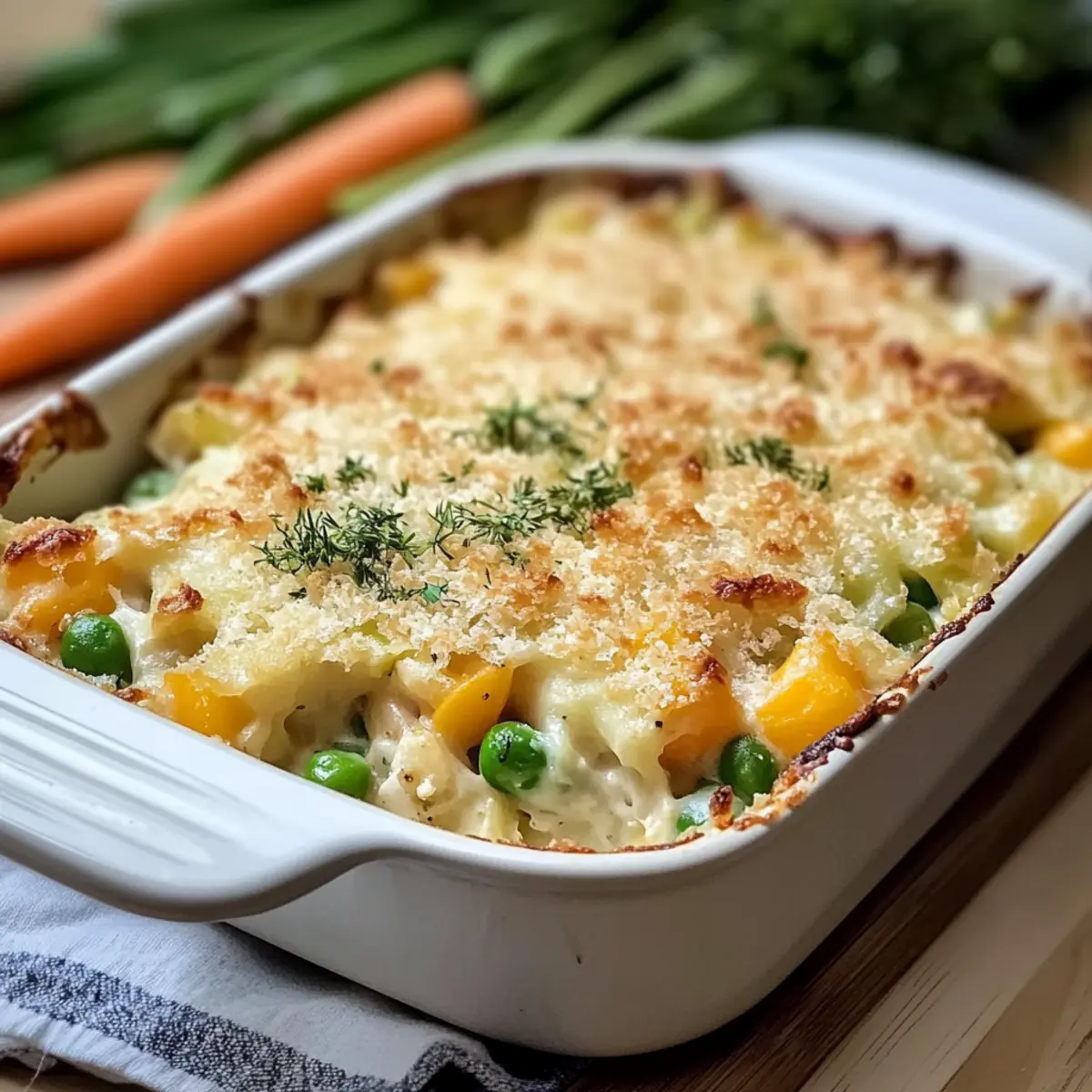 Prepare your Creamy Spring Vegetable Casserole ahead of time to save precious minutes on busy weeknights! You can assemble the casserole up to 24 hours in advance by combining all the ingredients in the baking dish, then cover it tightly with plastic wrap and refrigerate. To maintain the casserole’s creamy texture and avoid a soggy topping, store the panko breadcrumbs and cheese separately until you’re ready to bake. When it’s time to serve, simply preheat your oven to 375°F (190°C), sprinkle the toppings over the chilled casserole, and bake for an additional 5-10 minutes to ensure everything is heated through and bubbly. Enjoy the convenience of a homemade meal that’s just as delightful!