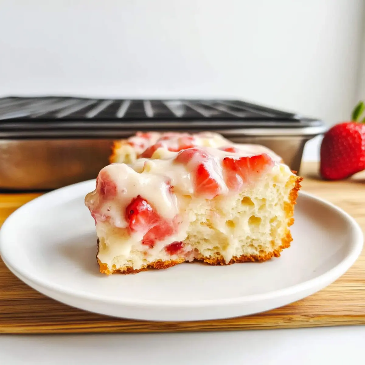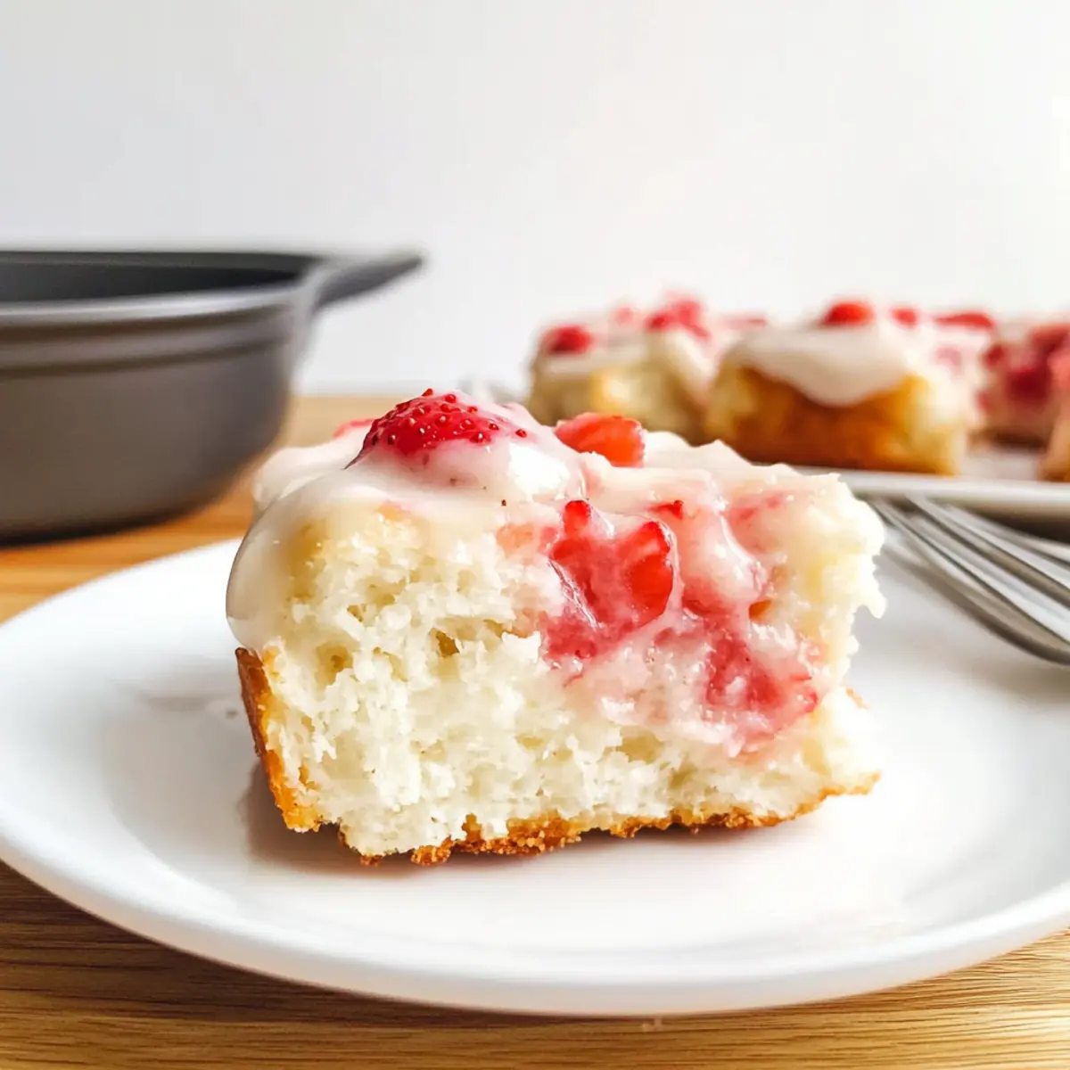 Once the biscuits have cooled slightly, drizzle the prepared icing over the warm Strawberry Butter Swim Biscuits. Allow the icing to set for a few moments, then slice the biscuits along the scored lines for easier serving. Revel in the aroma, and prepare to enjoy these delicious treats warm and fresh!