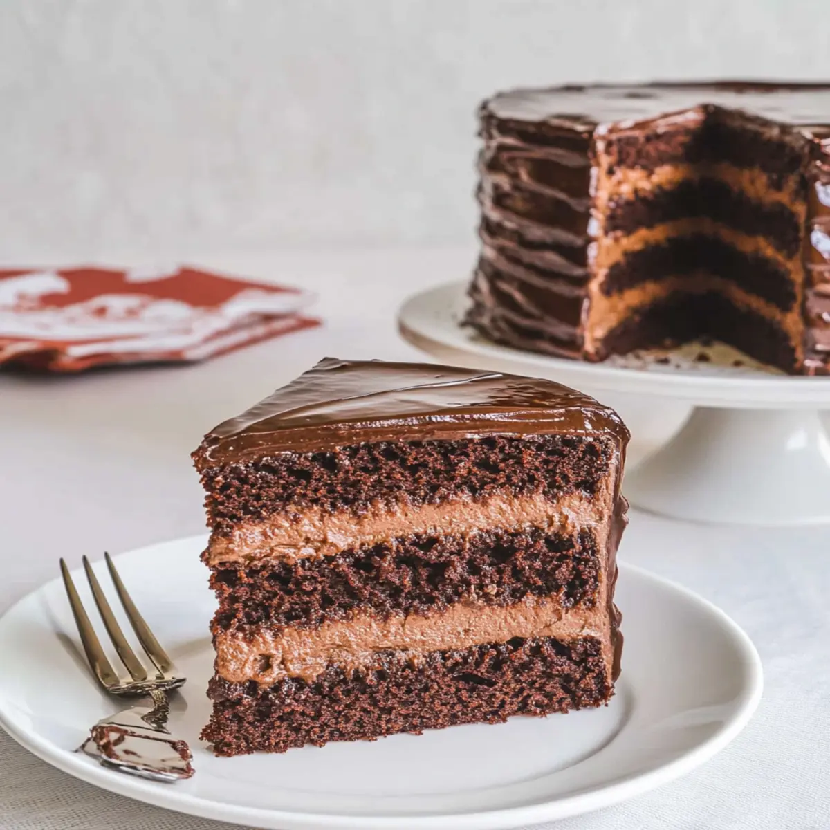 These Supreme Chocolate Cake layers are perfect for meal prep enthusiasts! You can bake the cake layers and prepare the mousse filling up to 24 hours in advance; simply store the cooled cakes in an airtight container and the mousse in the refrigerator to maintain its silky texture. The cake can also be assembled a day ahead, allowing the flavors to meld beautifully while chilling overnight. When you’re ready to serve, finish your masterpiece by preparing the ganache and pouring it over the chilled cake. This way, you’ll have a stunning dessert that tastes just as delicious with minimal last-minute effort, making it ideal for busy weeknights or special occasions!