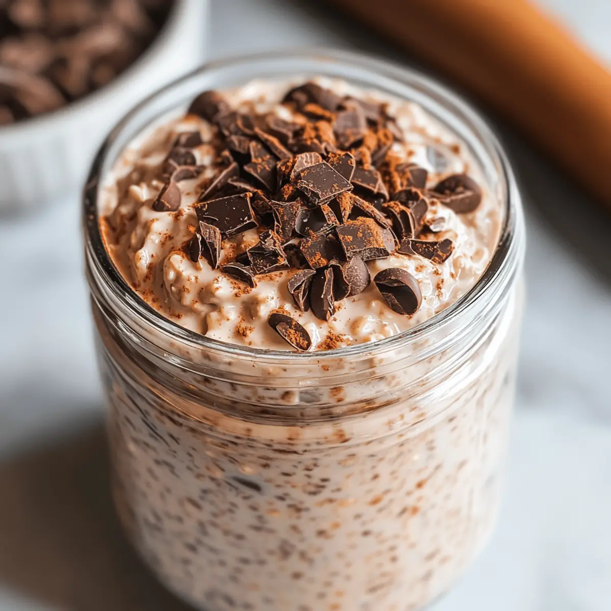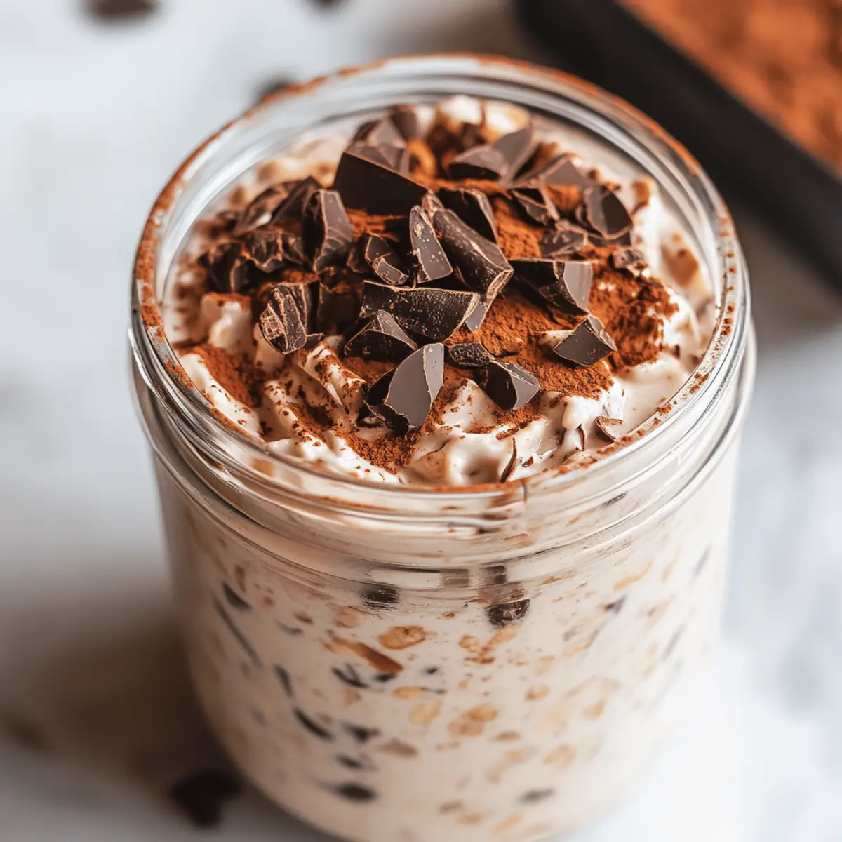 In the morning, remove your Tiramisu Overnight Oats from the fridge and top them with dark chocolate chips or shavings for an extra indulgent touch. If you like, sprinkle some cacao nibs for added crunch and a hint of bitterness. Each spoonful will be a delightful blend of flavors to brighten your day!