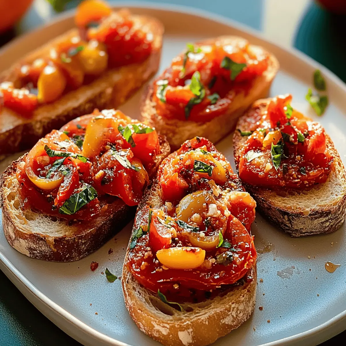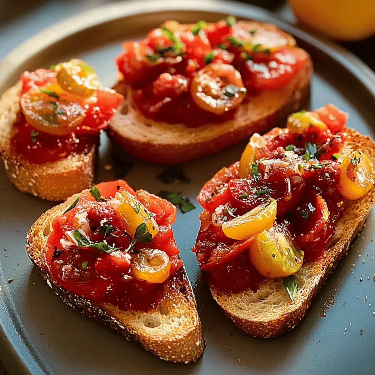 Very good question! Keep toasted bread slices at room temperature for up to 3 hours for optimal crispness. For any leftover tomato mixture, store it in an airtight container in the fridge for up to 2 days. This helps retain the fresh flavors of the ingredients.