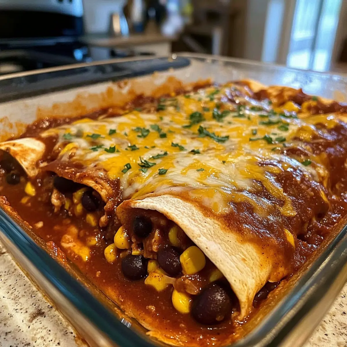 Satisfying and Hearty: These Vegetarian Black Bean Enchiladas are brimming with protein and fiber, ensuring that every bite is as filling as it is delicious.