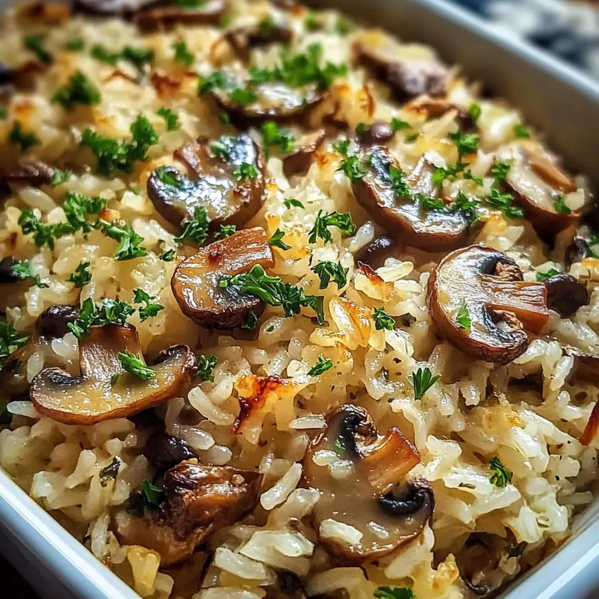 Vegetarian Garlic Mushroom Rice Bake for Cozy Comfort Evenings